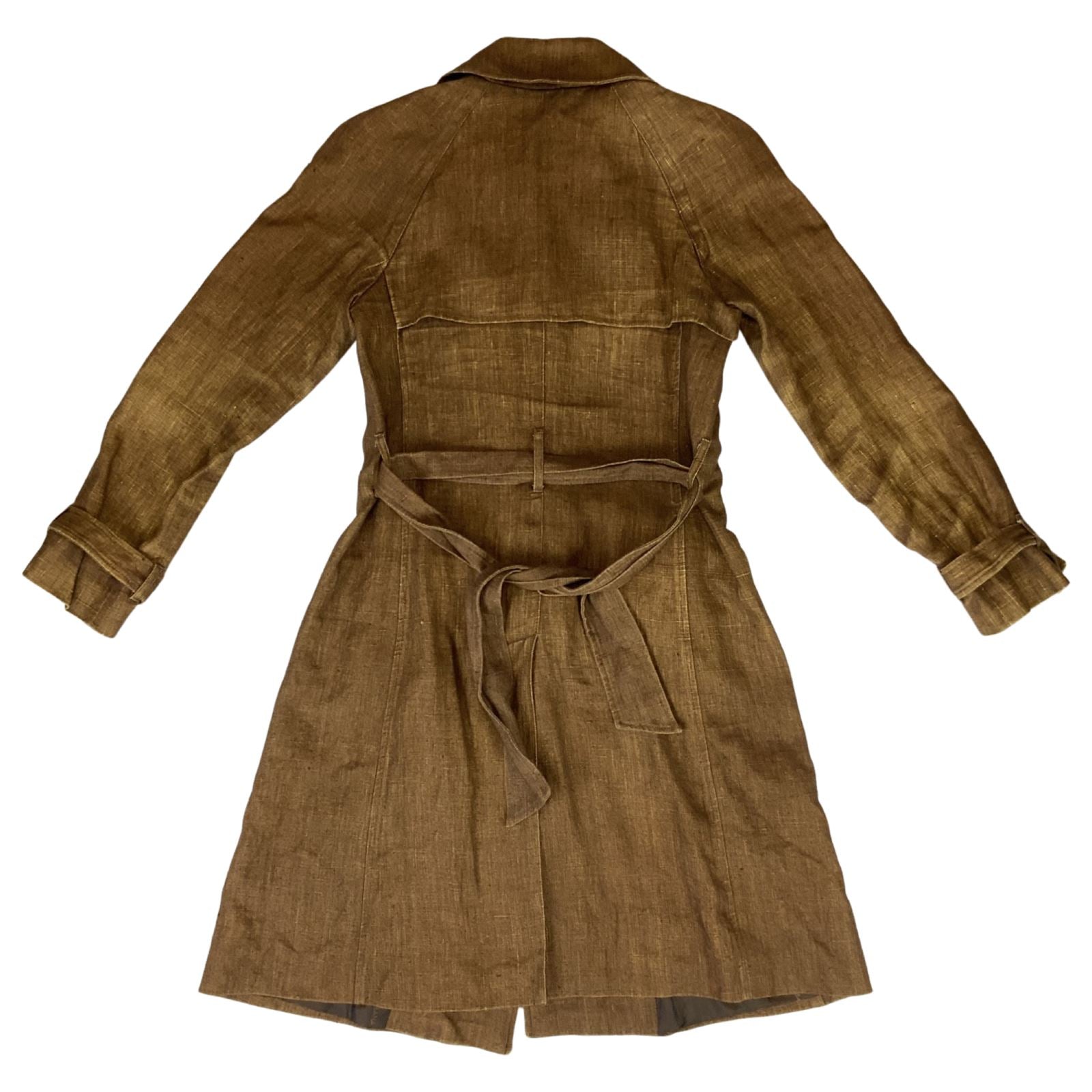 Vintage 90s 00s Brown Gold Dolce & Gabbana Linen Trench Coat 38 8 10 S