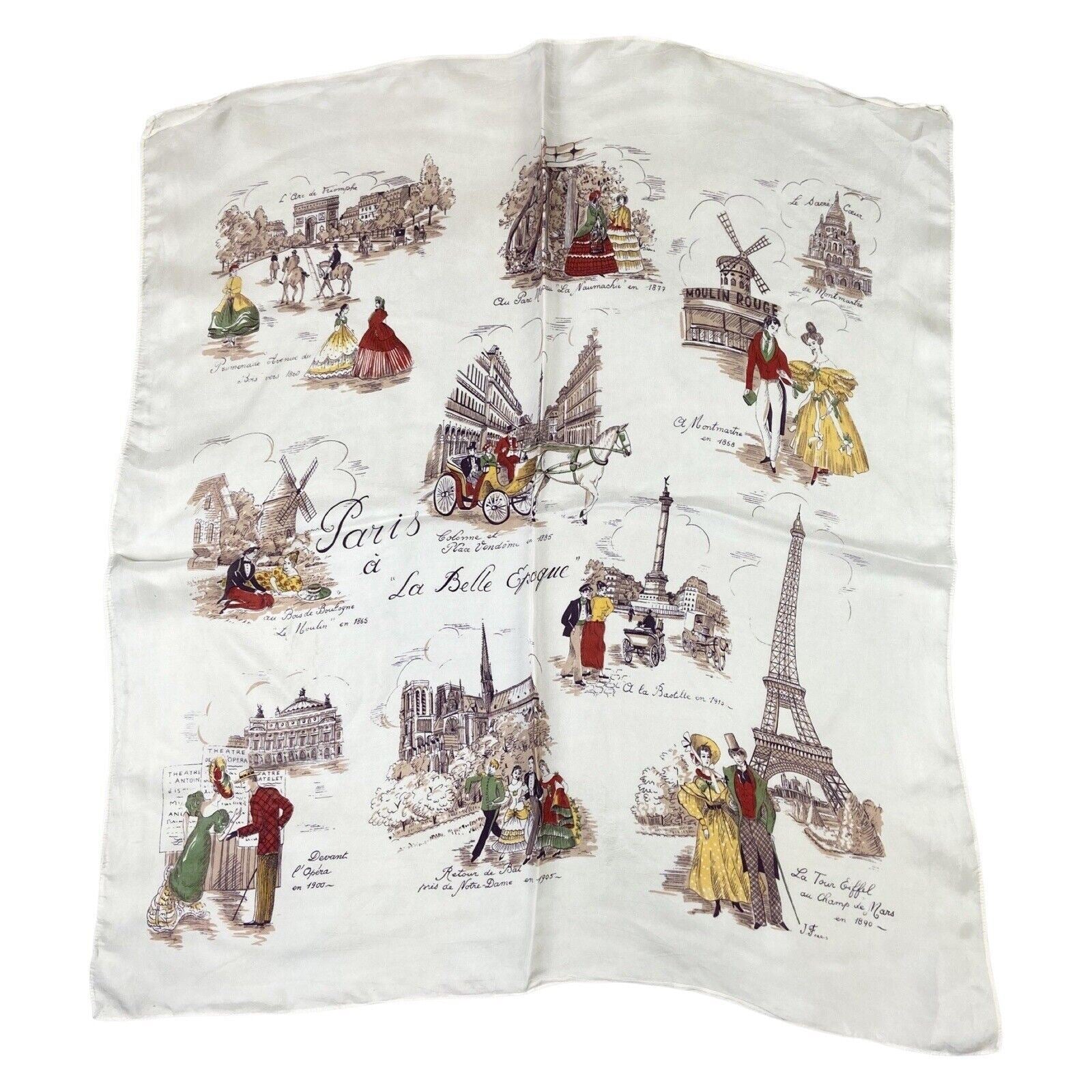 Vintage 90s 00s Cream Graphic Print Parisian Style French Scarf