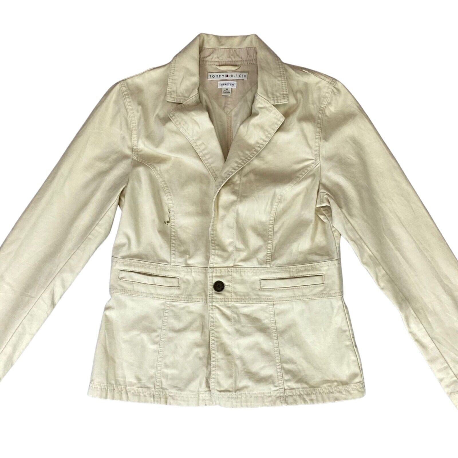 Vintage 90s 00s Cream Tommy Hilfiger Button Up Blazer Suit Safari Jacket M 12 14