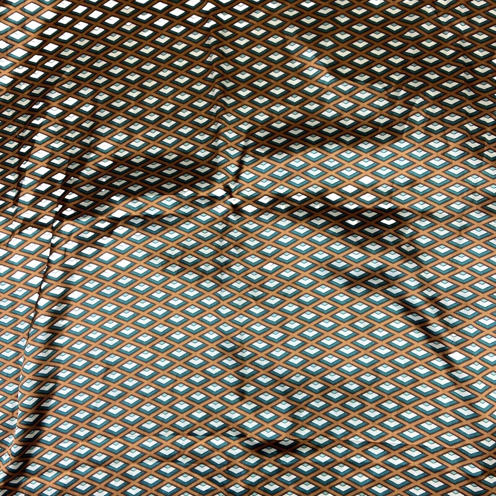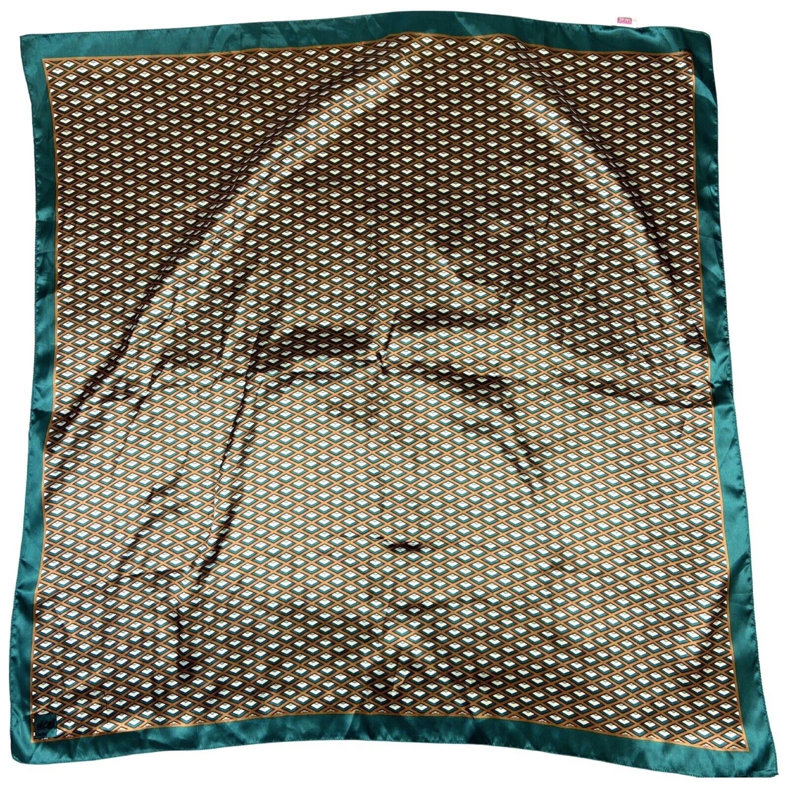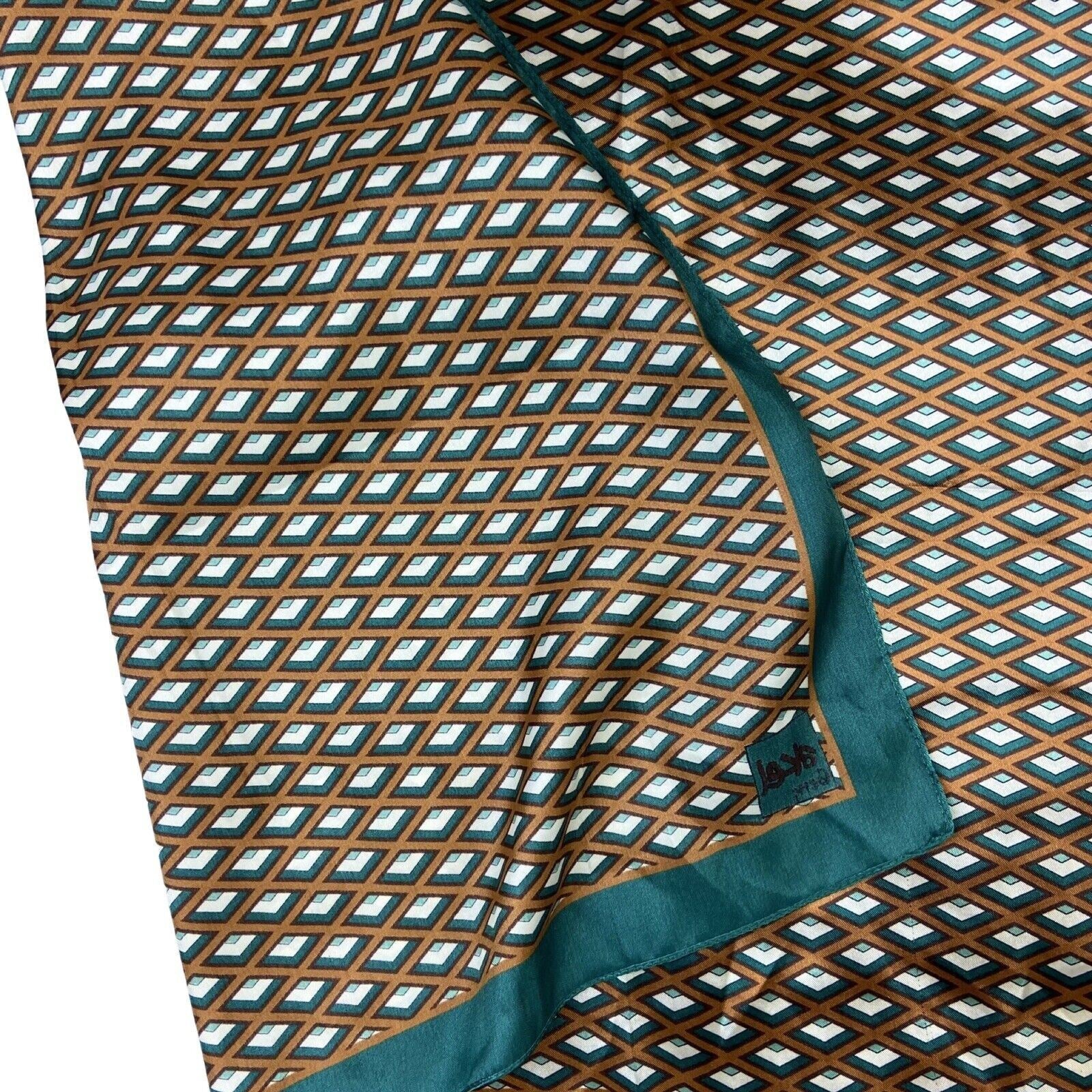 Vintage 90s 00s Green Brown White Geometric Diamond Print Scarf