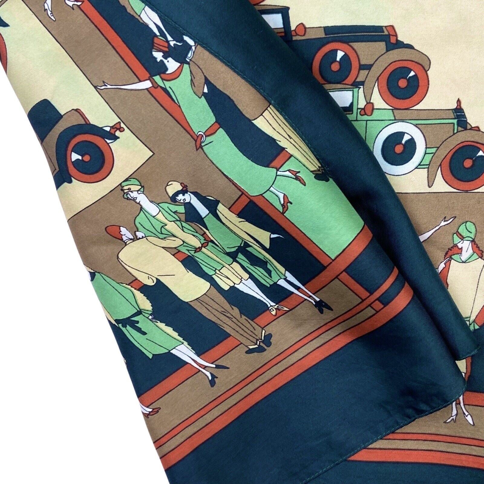 Vintage 90s 00s Green Cream Orange 20s Style Car Print Scarf