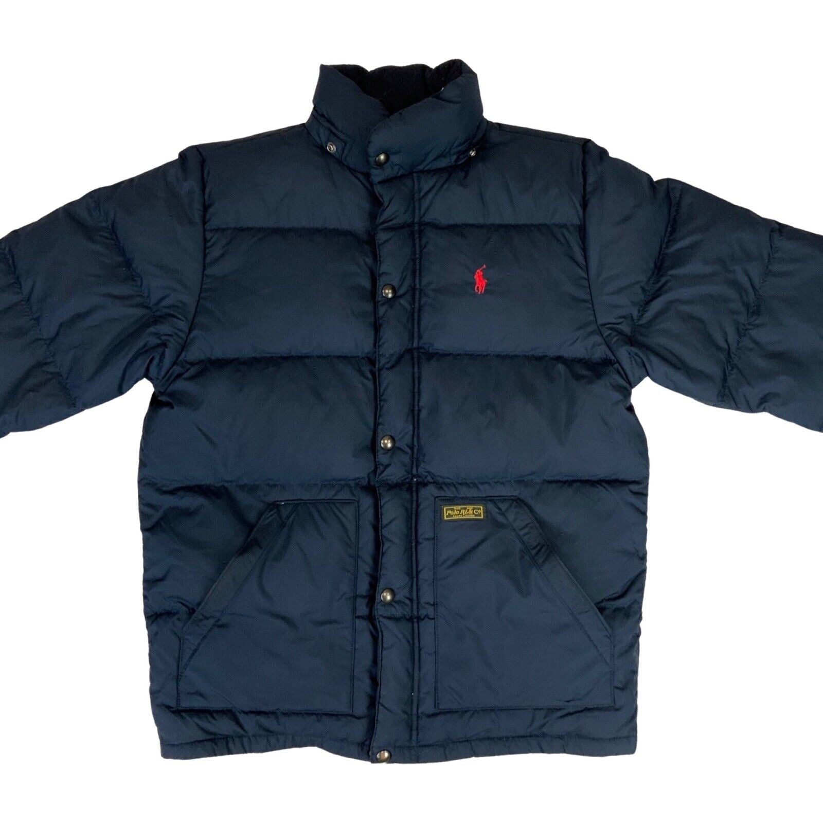 Vintage 90s 00s Navy Polo Ralph Lauren Puffer Coat Embroidered Down Quilted M