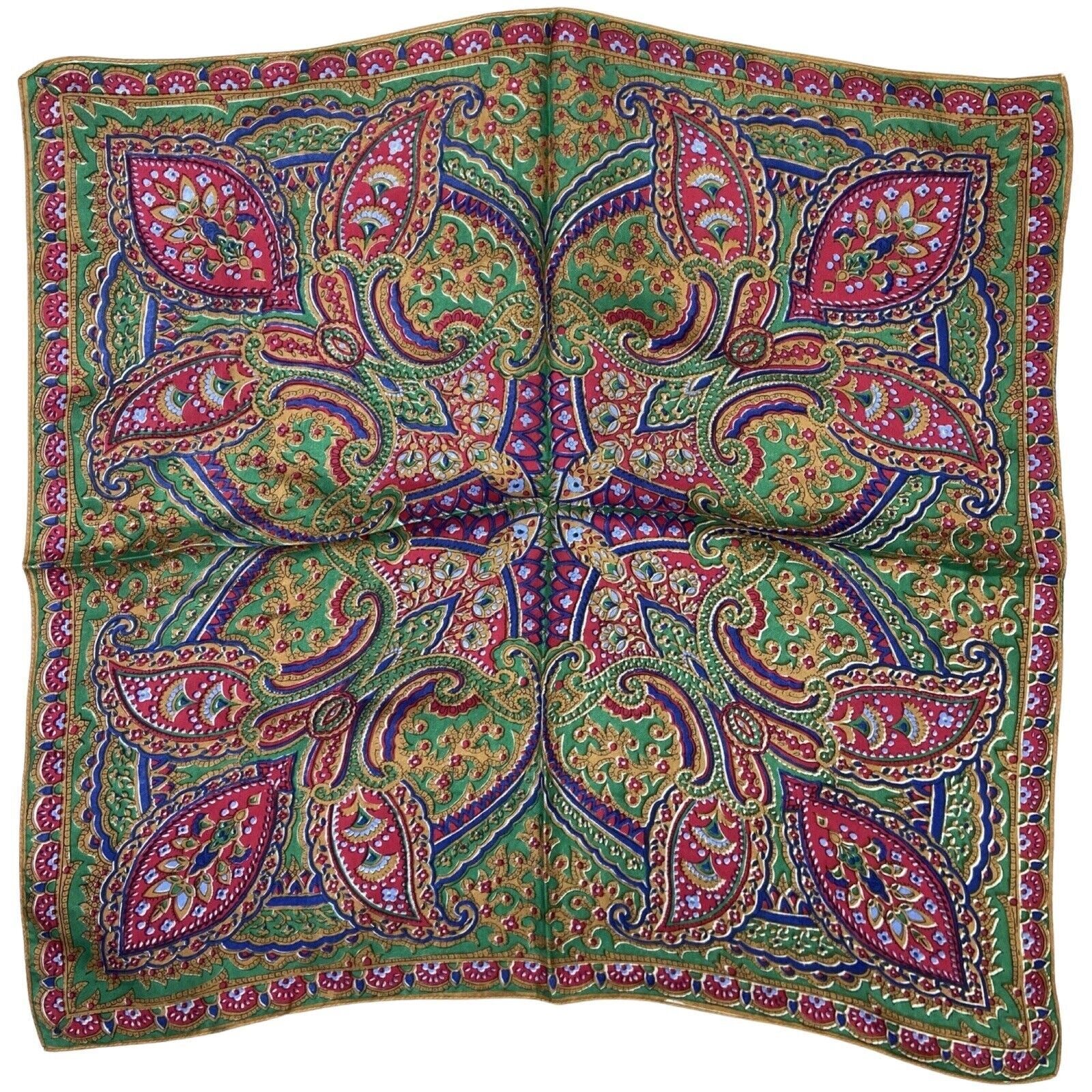 Vintage 90s 00s Pink Green Blue Paisley Floral Print Scarf