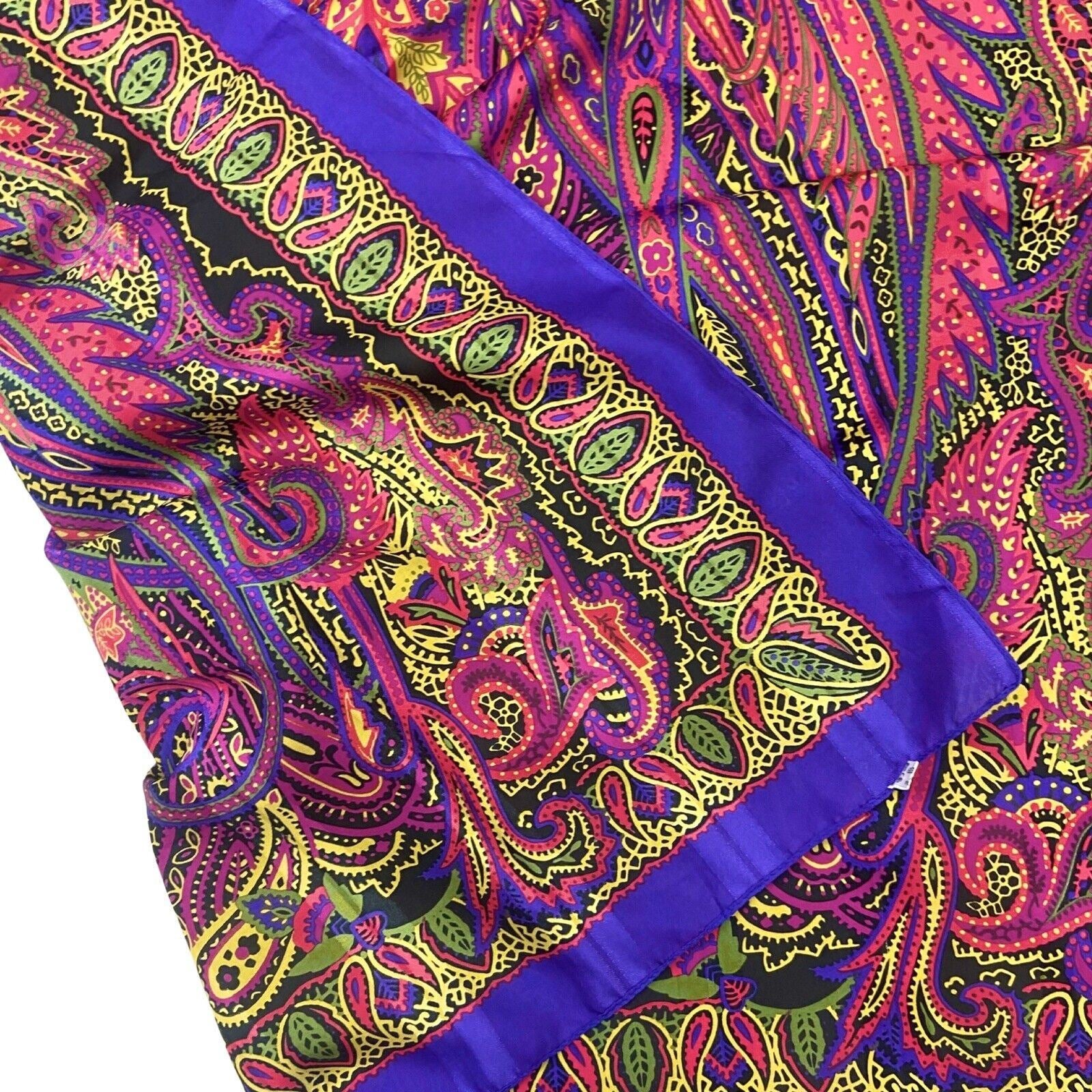 Vintage 90s 00s Purple Yellow Pink Paisley Psychedelic Floral Print Scarf