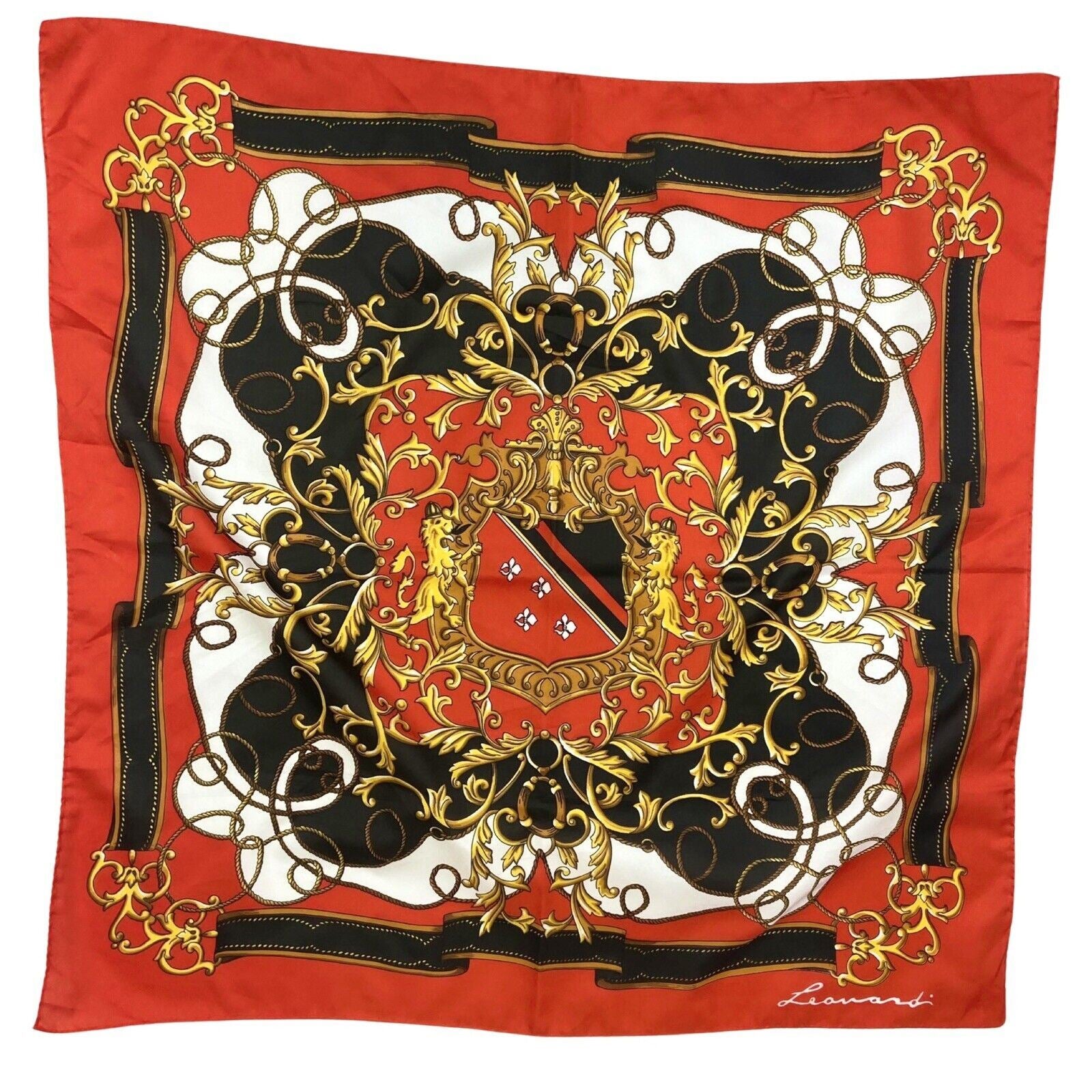 Vintage 90s 00s Red Brown Gold Filigree Ornamental Patterned Silk Scarf