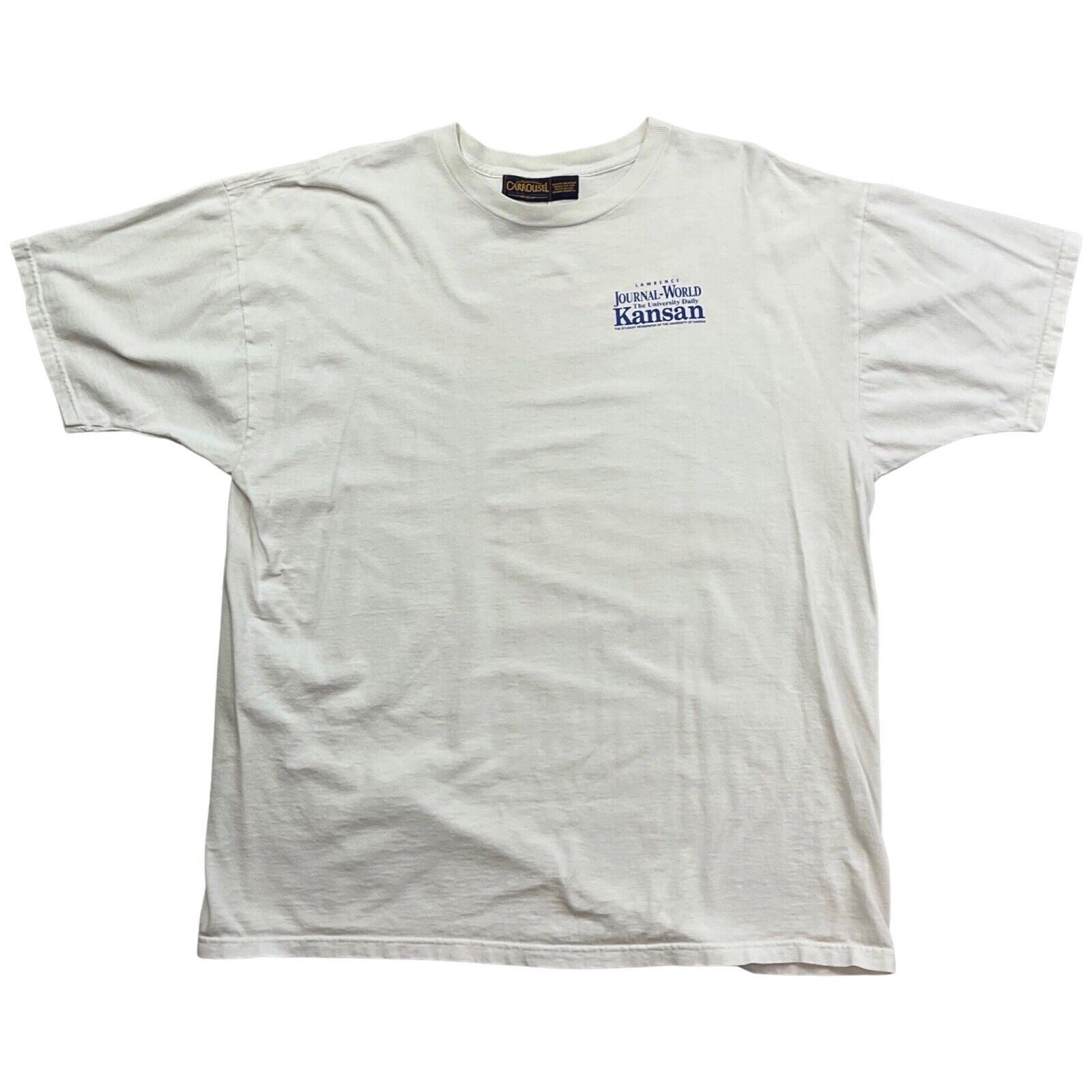 Vintage 90s 00s White Kansas University Kansan Newspaper Novelty Tshirt L XL