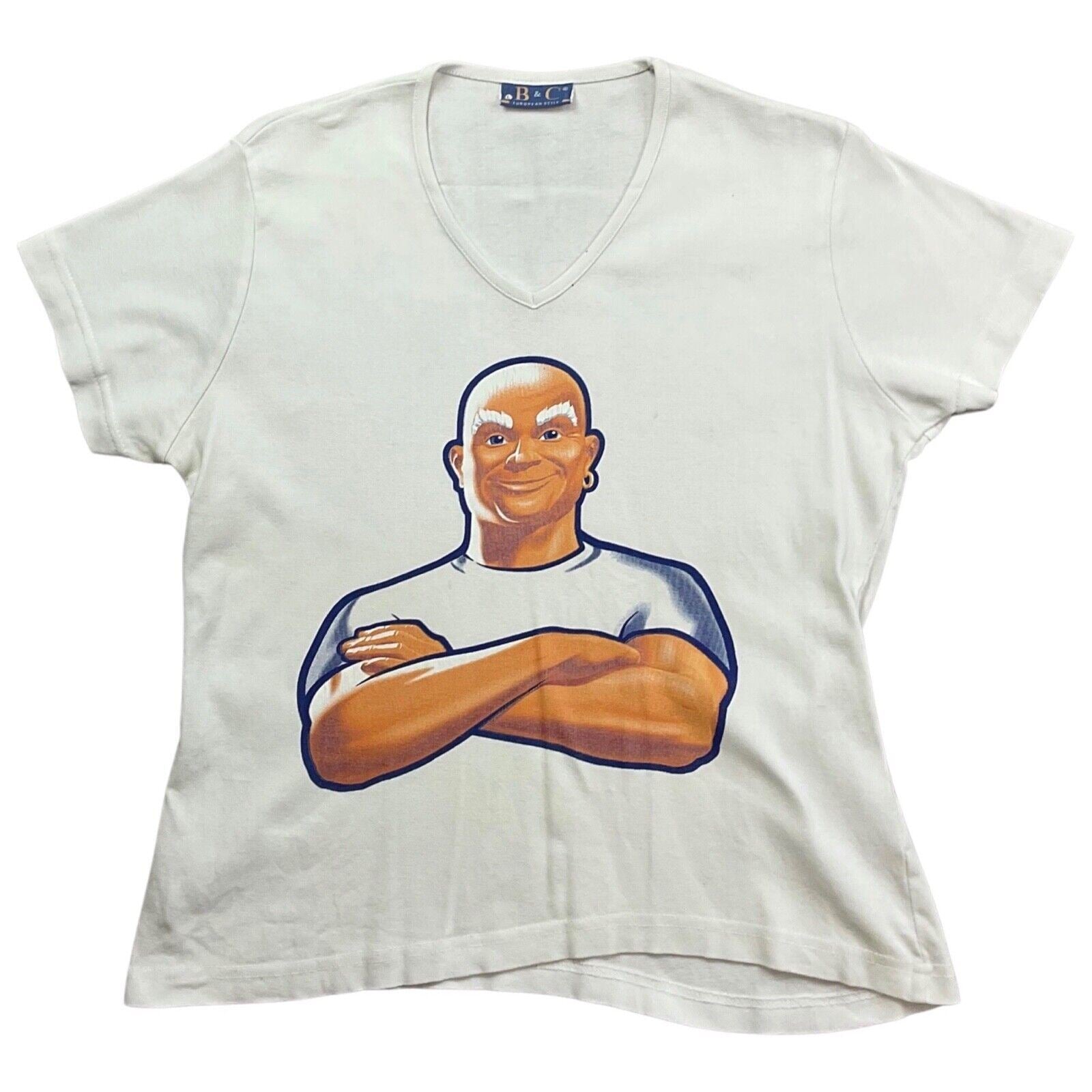 Vintage 90s 00s White Mr Clean Graphic Baby Tee V Neck T-Shirt M 12 14