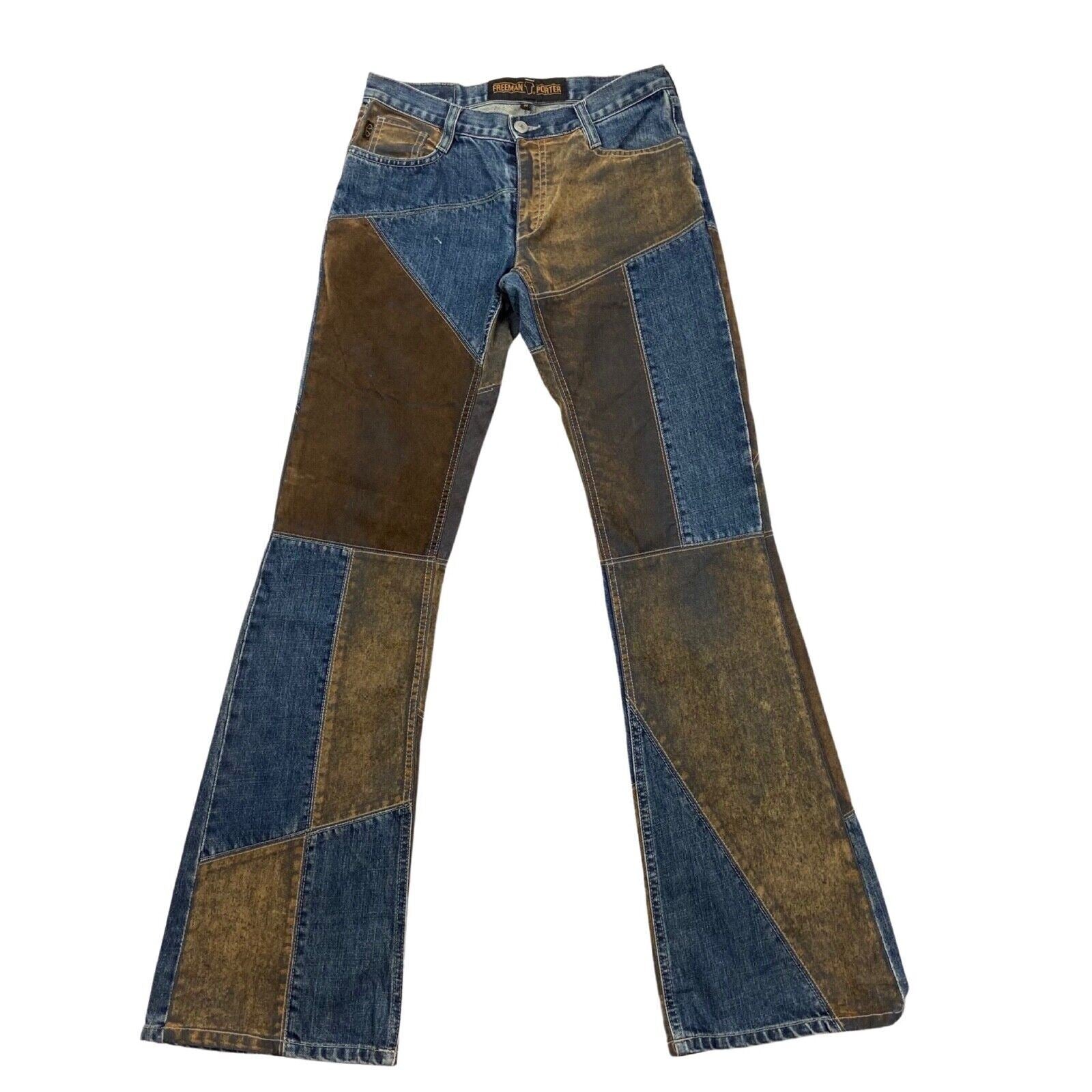 Vintage 90s 00s Y2K Blue Brown Patchwork Flared Denim Jeans 29" 8 10