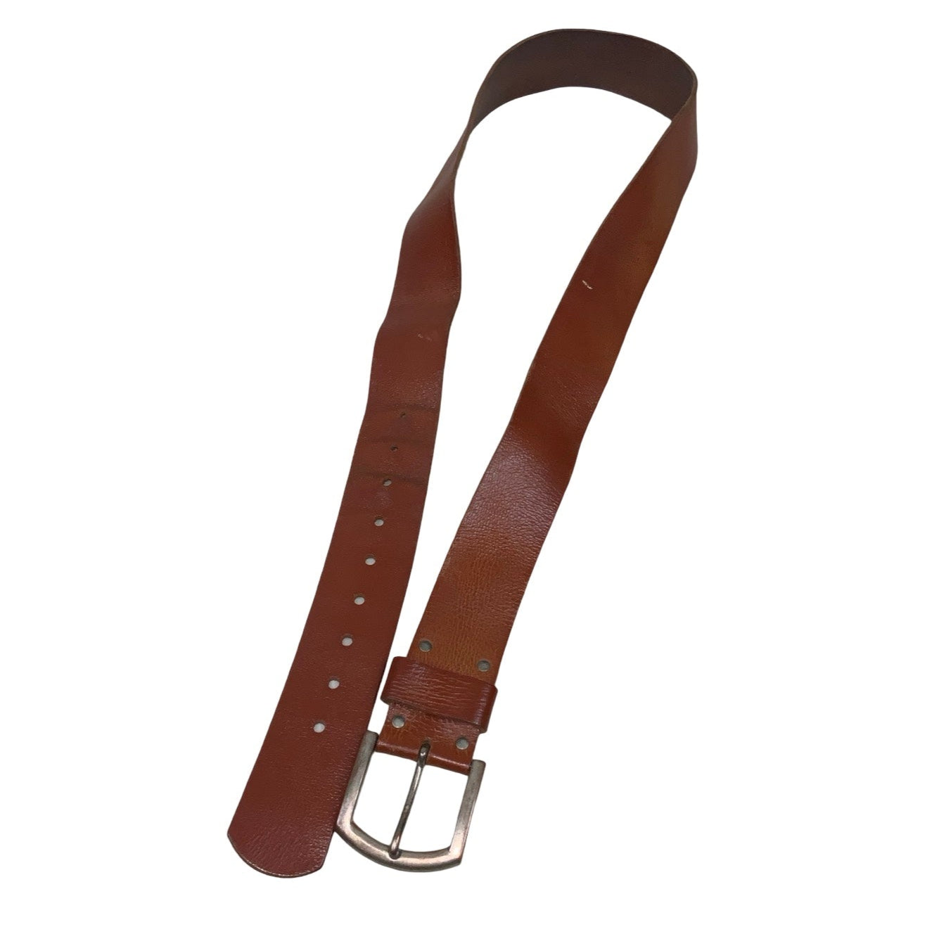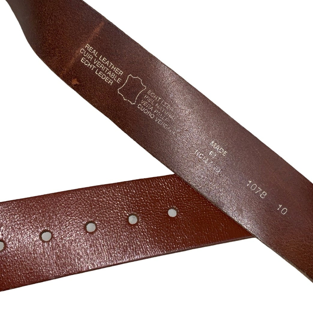 Vintage 1990s/00s brown 1078 real leather belt with a slight distressed look and a single prong silver buckle. Made in Holland. It features a choice of 9 prong holes, giving a good range of sizing options.