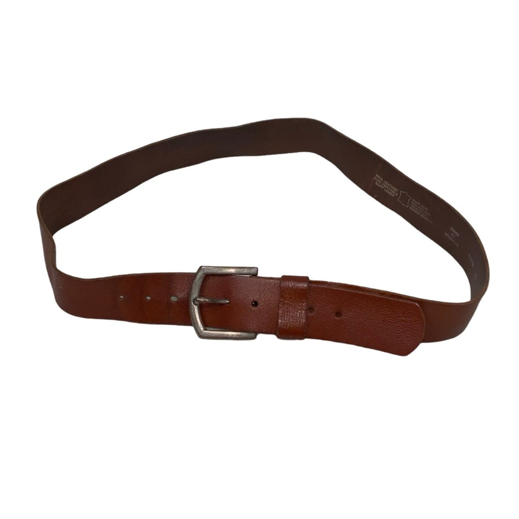 Vintage 90s 00s Y2k Brown (1078) Leather Distressed Silver Buckle Belt