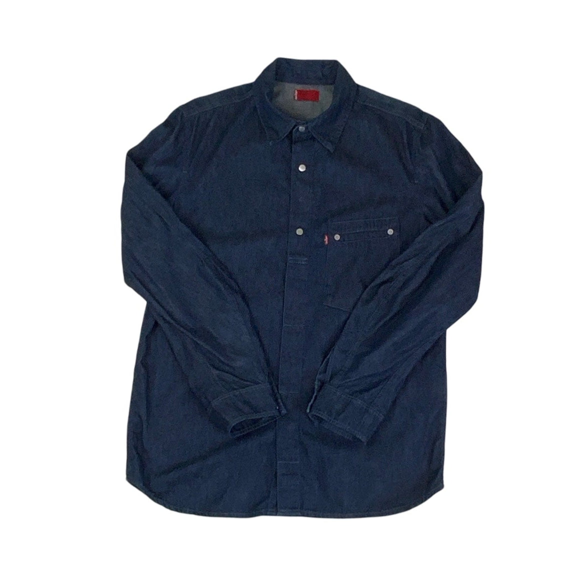 Vintage 90s/00s Levi's red tab dark blue denim shirt with pop button fastening and a single chest pockets.