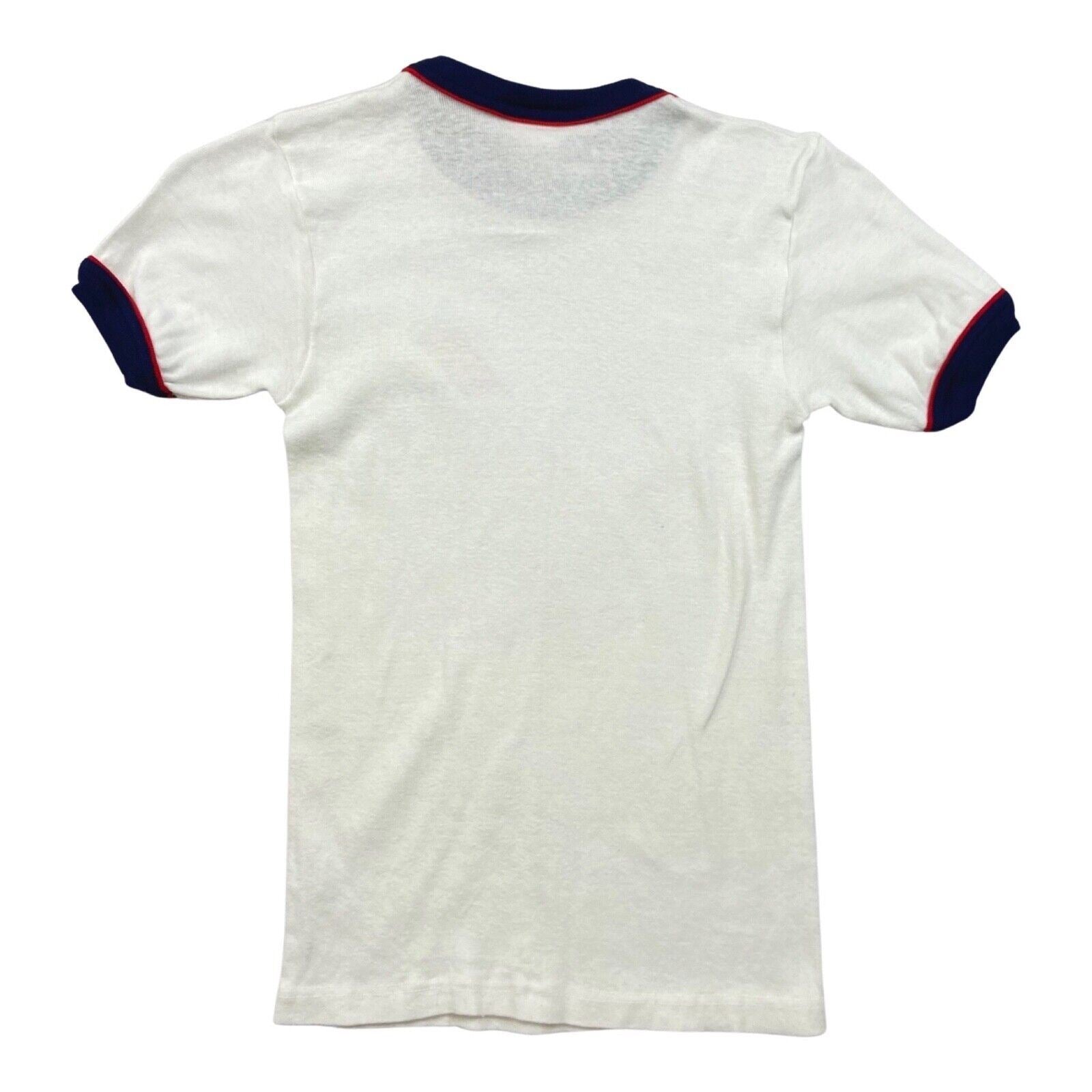 Vintage 90s 00s Y2K White Blue Yamaha Ribbed Fitted Baby Tee XS 6