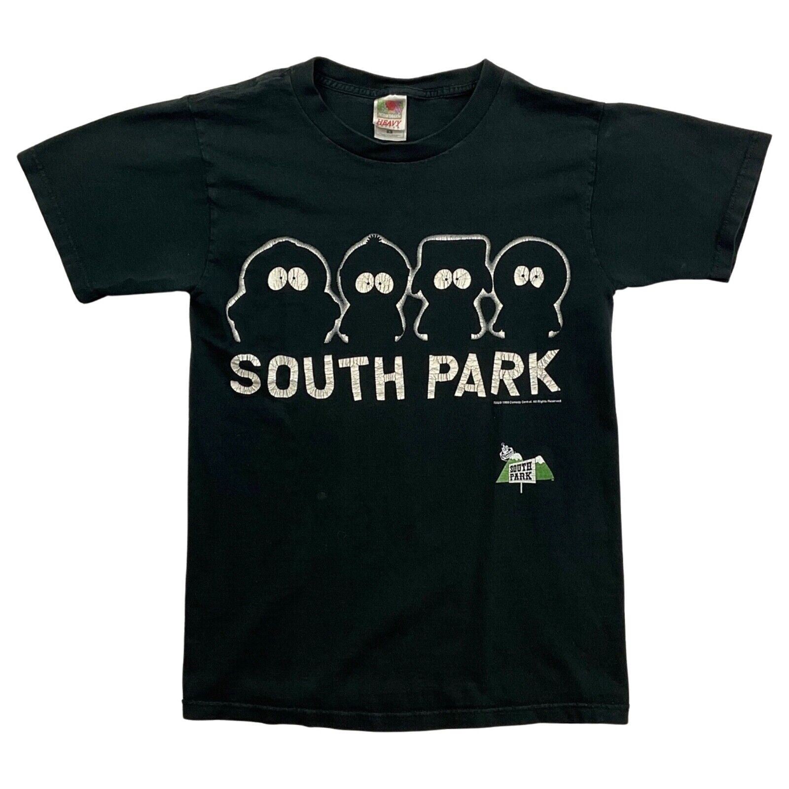 This is a fab vintage 1999 South Park tshirt, printed on a black cotton Fruit of the Loom tshirt.