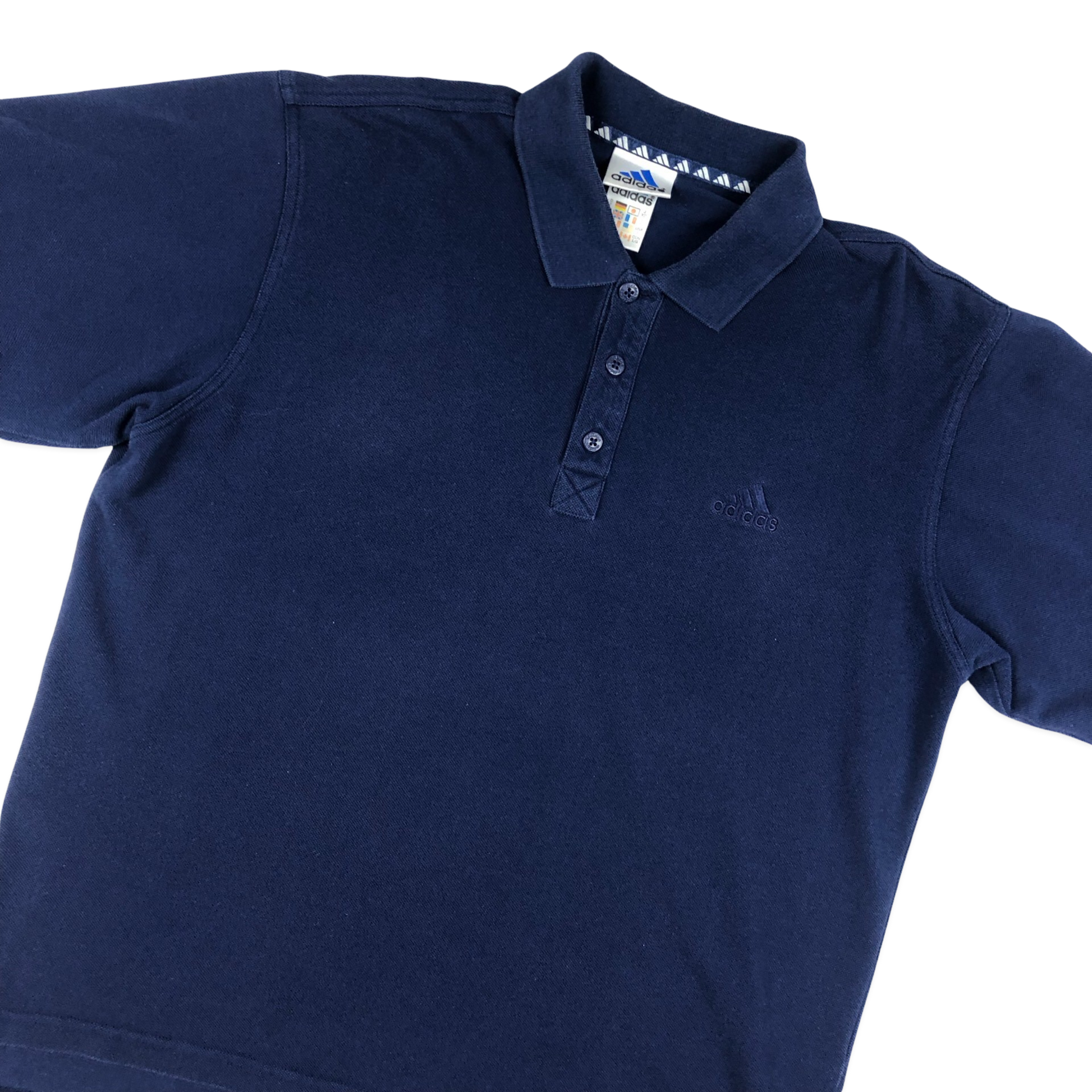 Vintage 1999 Adidas navy polo shirt with chest embroidered logo.