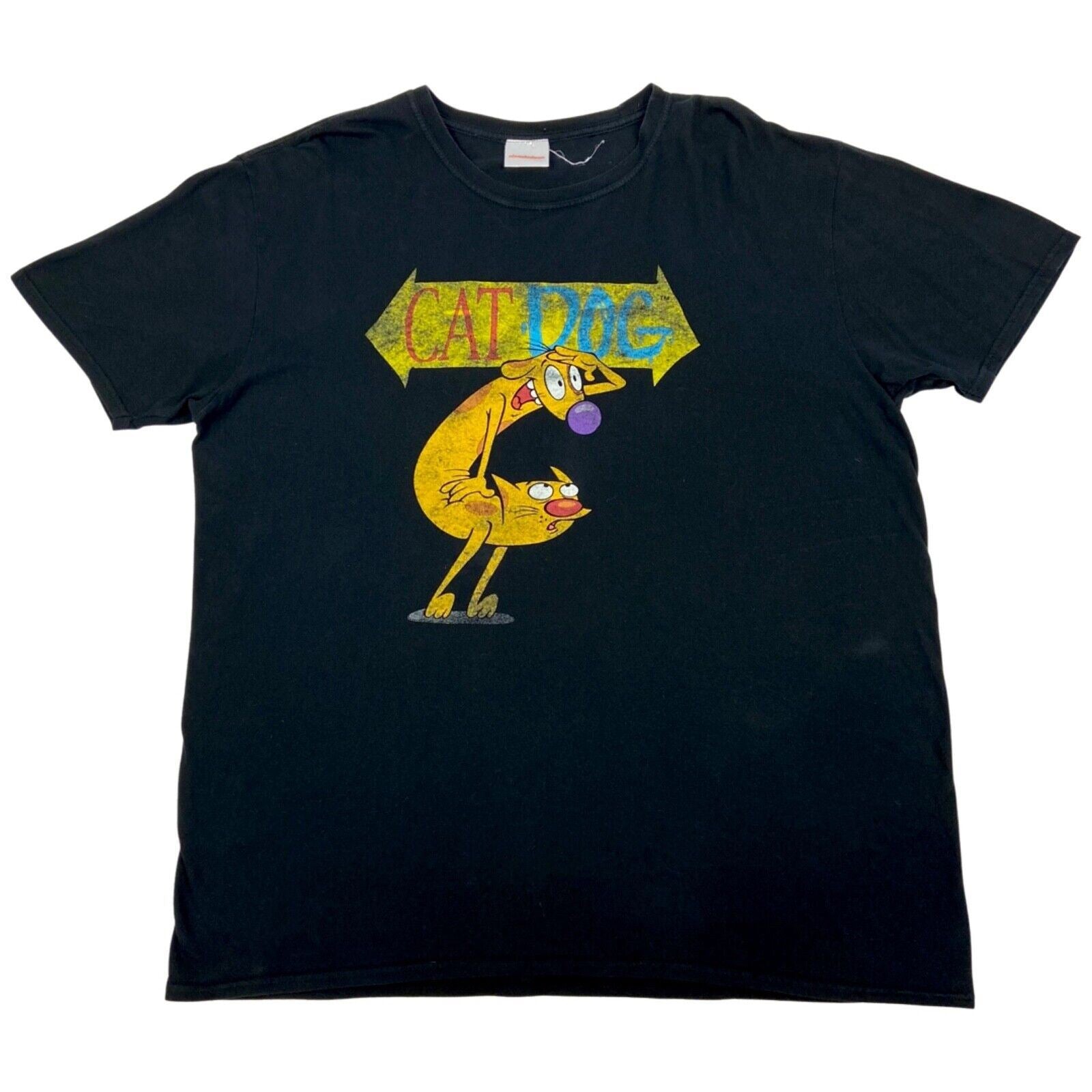 This is an awesome Nickelodeon Cat Dog T-shirt. This piece has a nice round neck with ribbed detailing. The front of the T-shirt features a large colourful Cat Dog graphic in the centre. The graphic has a few cracks but this does not affect the overall look of the piece. This T-shirt would be best worn oversized for a more boxey fit.