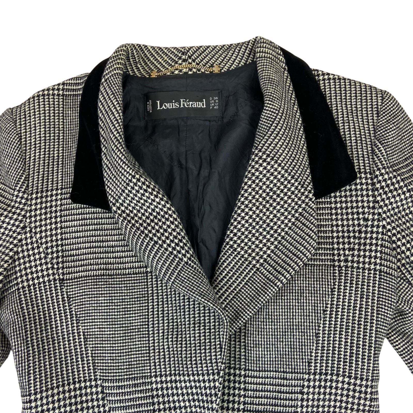 This is a lovely black and white Louis Feraud blazer, made from 100% wool with 100% cotton velvet and a 100% viscose lining. There is a small amount of stretch to this item.