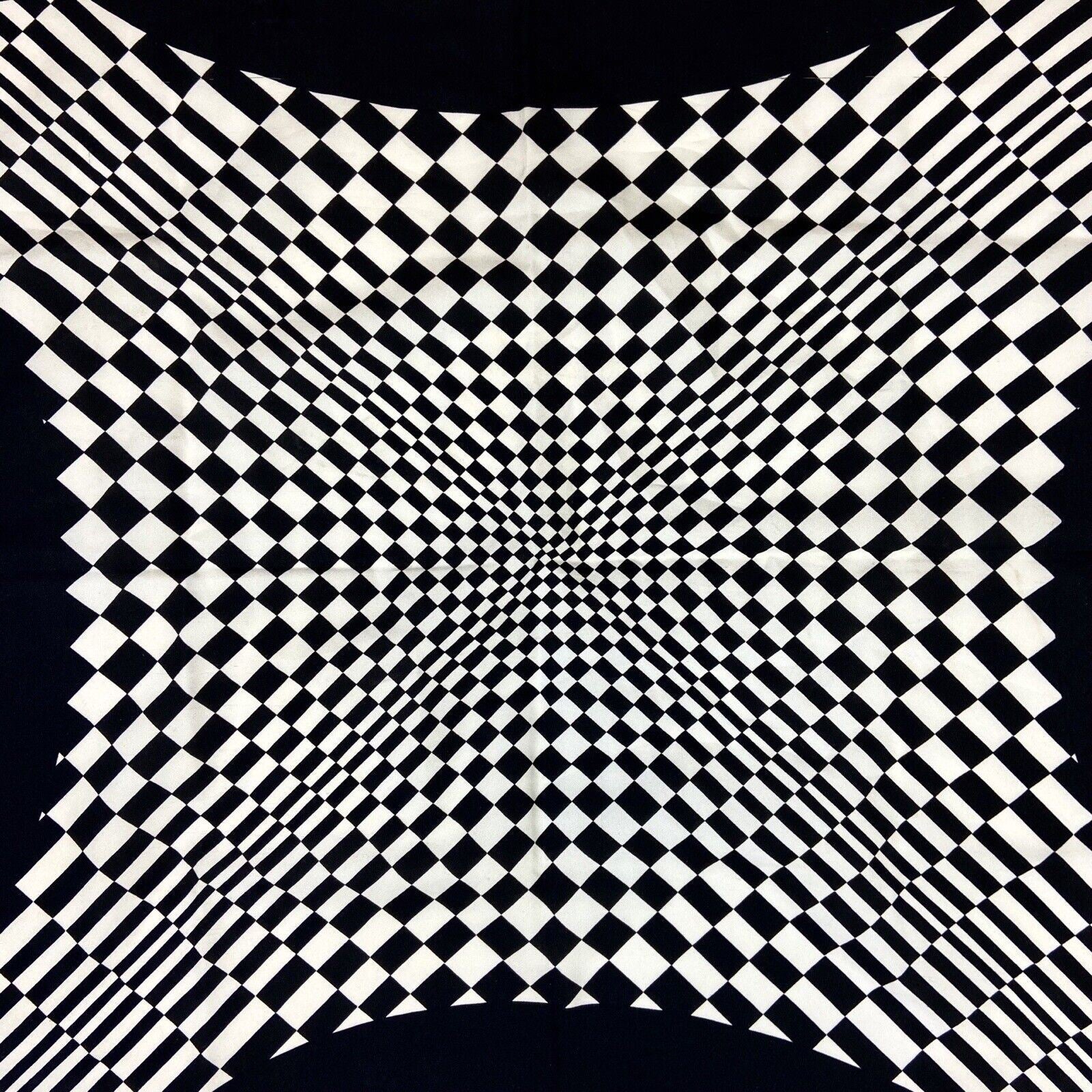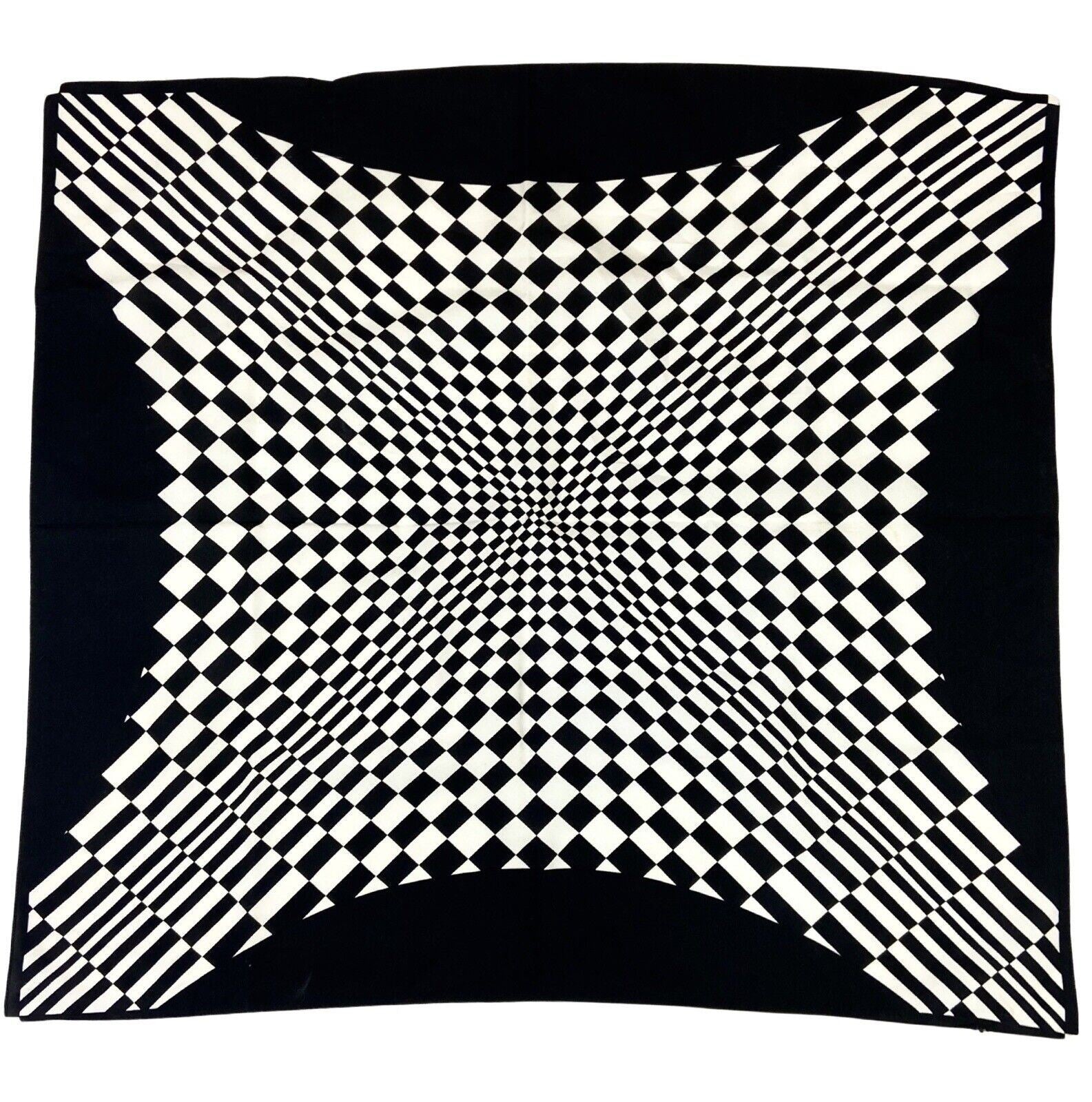 Vintage 90s Black White Square Geometric Optical Illusion Print Scarf