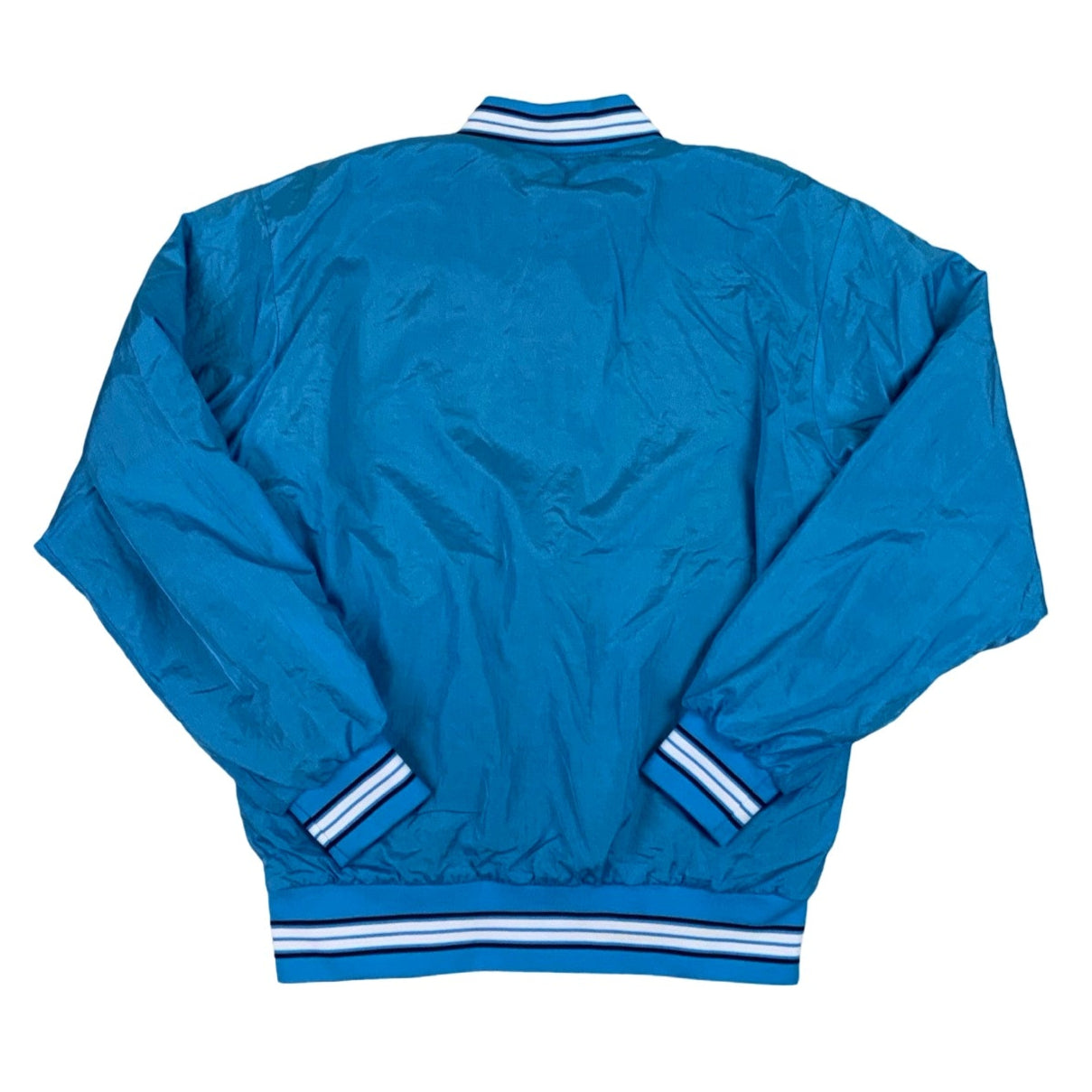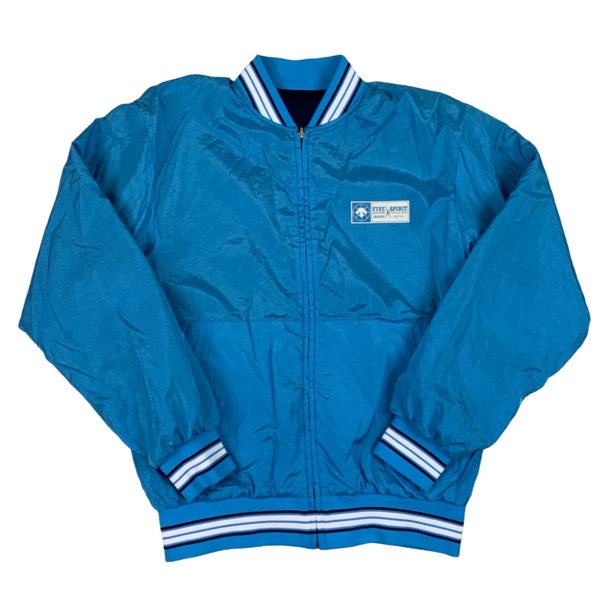1990s bright blue retro nylon varsity jacket featuring, zip closure, small branding on chest.