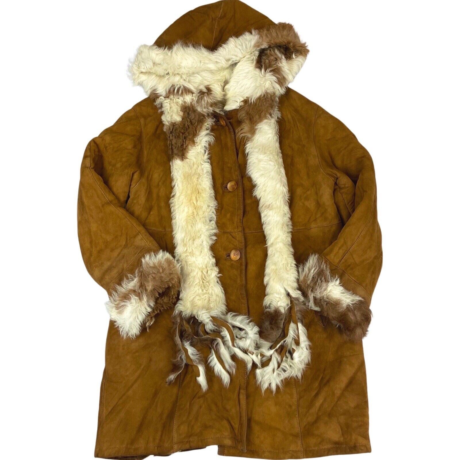 Vintage 90s Brown Sheepskin Suede Shearling Button Up Fully Lined Jacket L