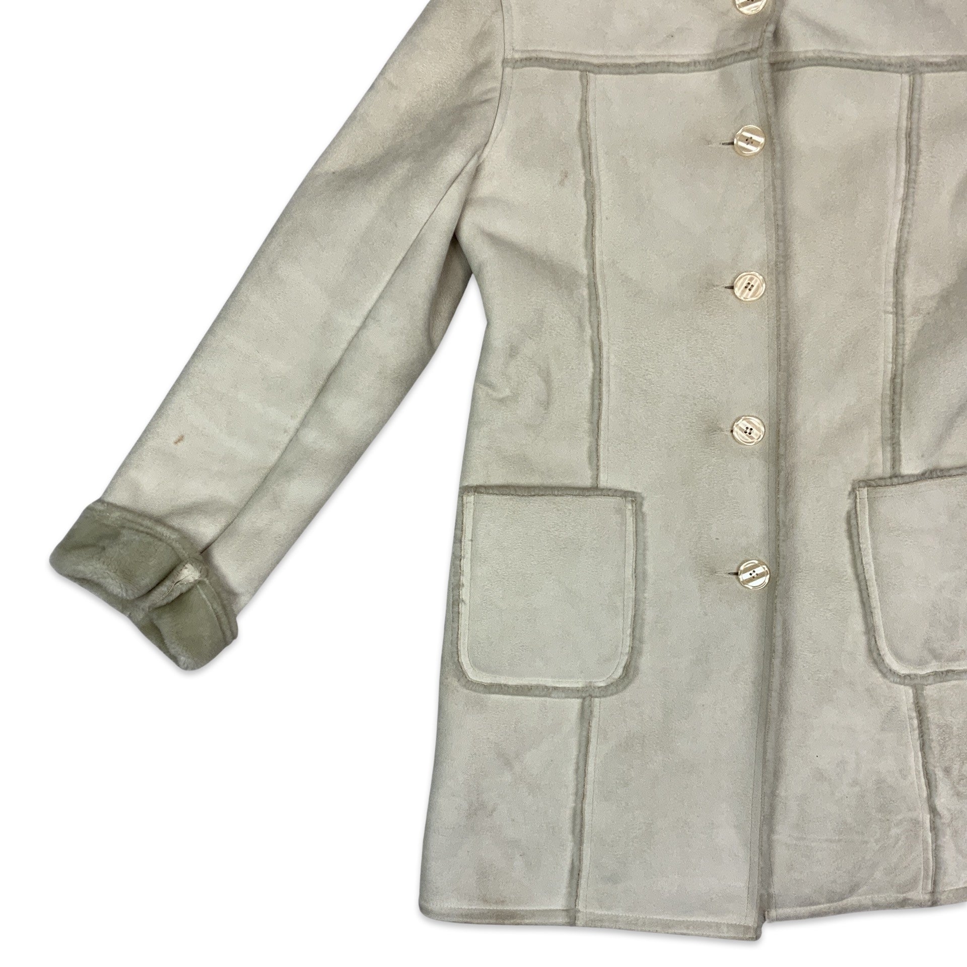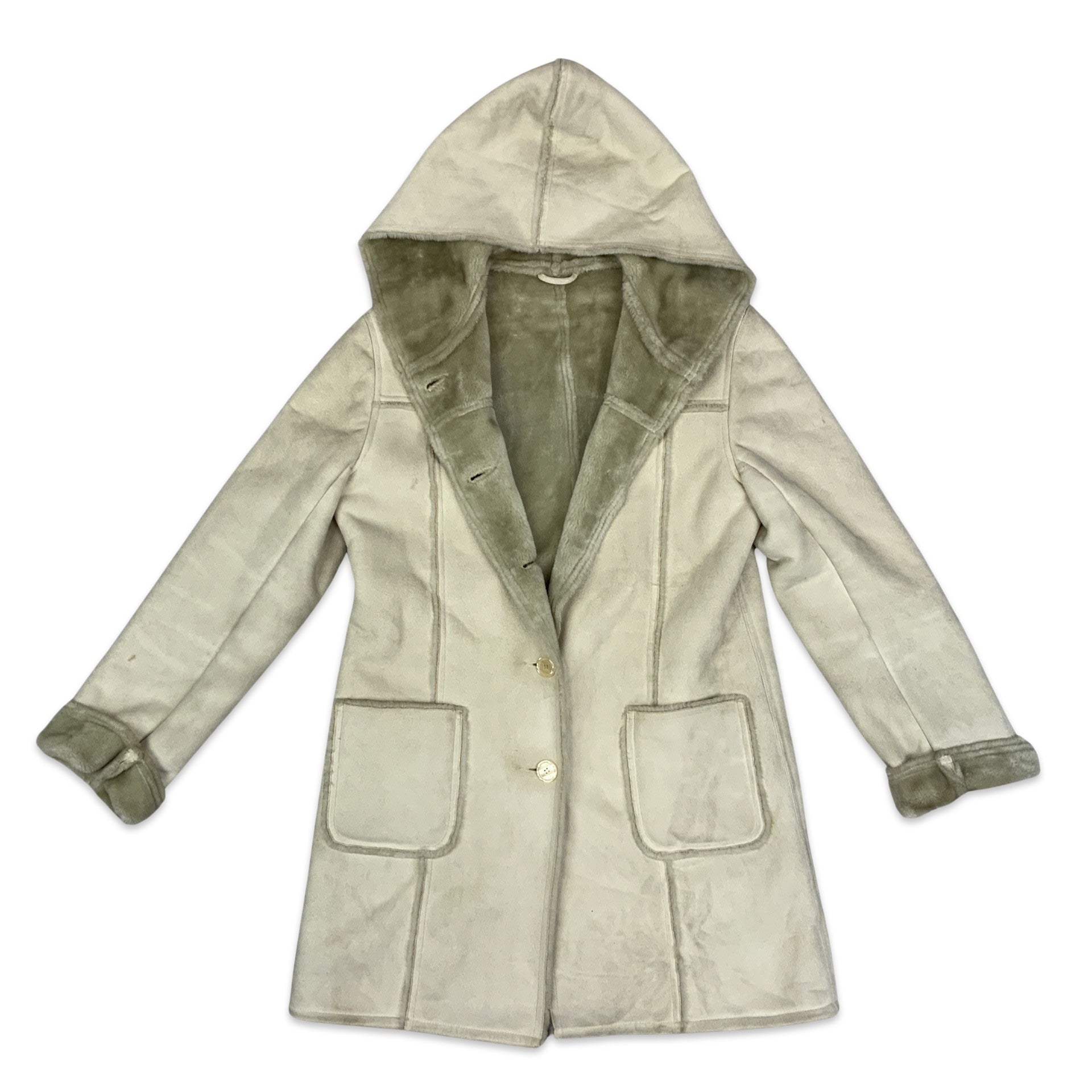 Vintage 90s Cream Hooded Sheepskin Shearling Coat 14 16