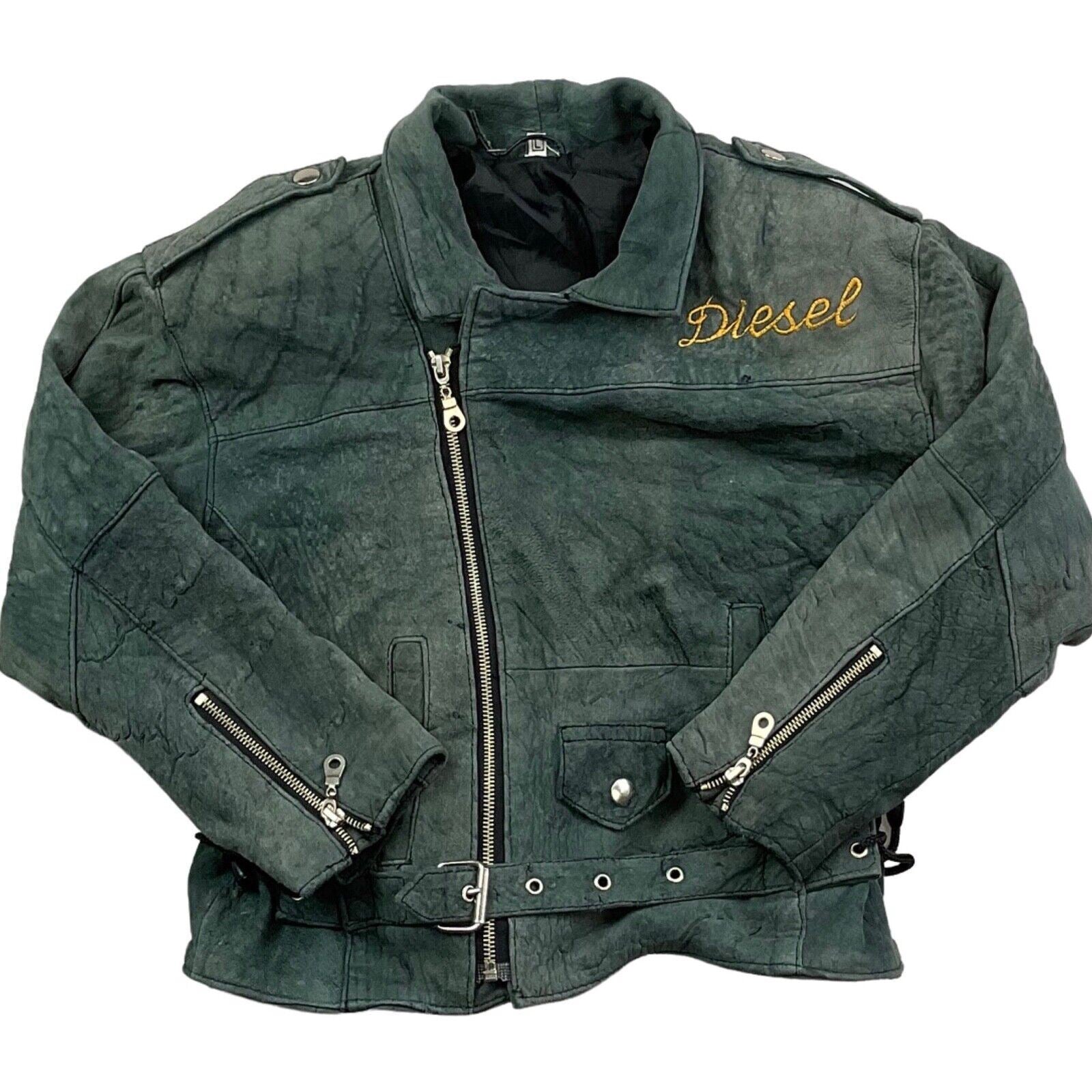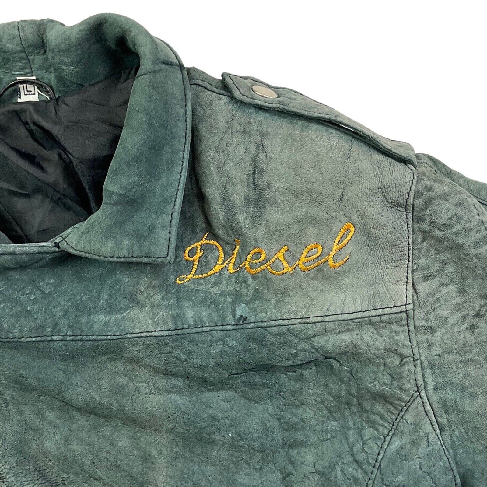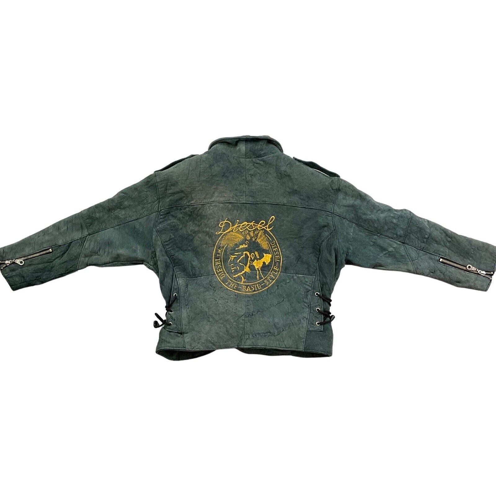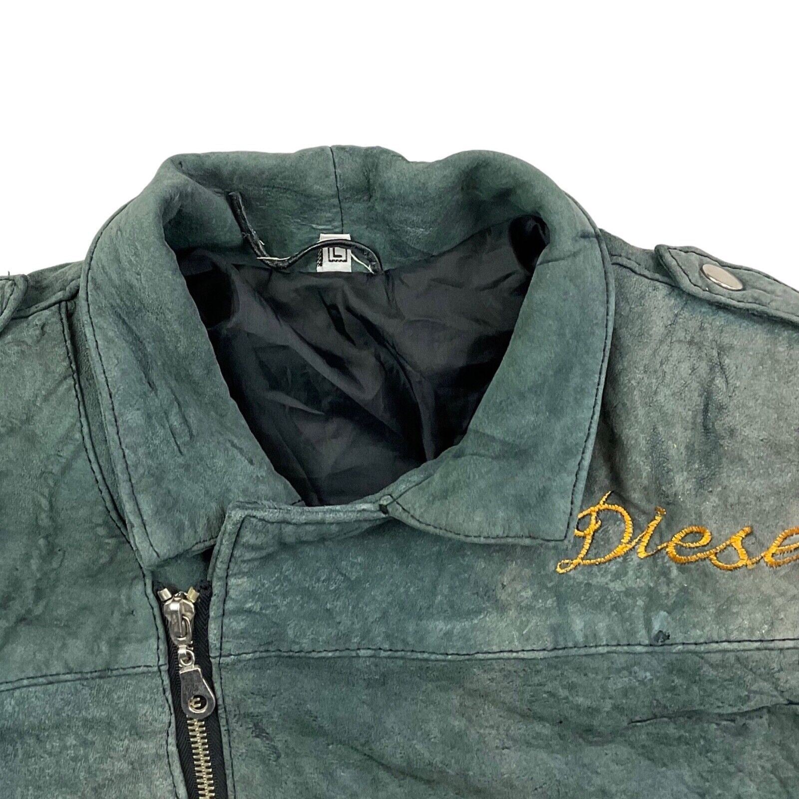 Vintage 90s Designer Grey Suede Diesel Embroidered Cropped Biker Jacket M 12 14