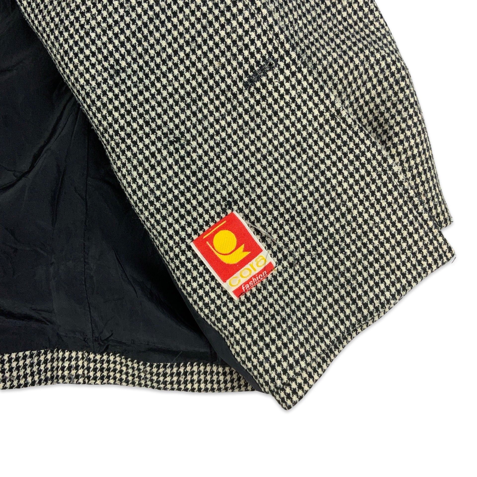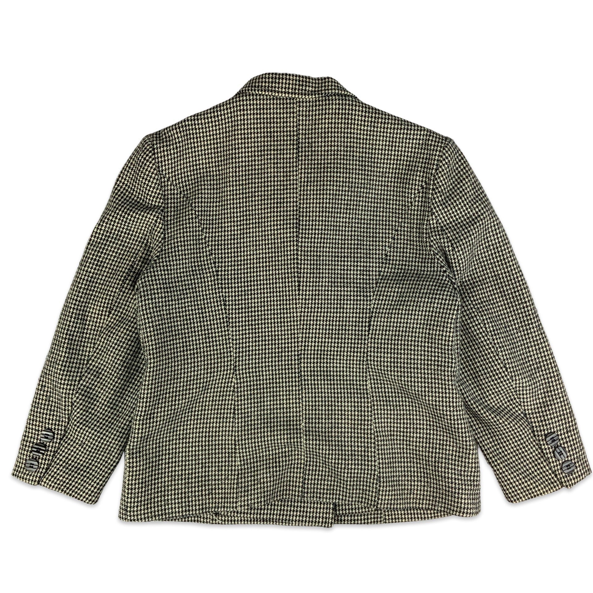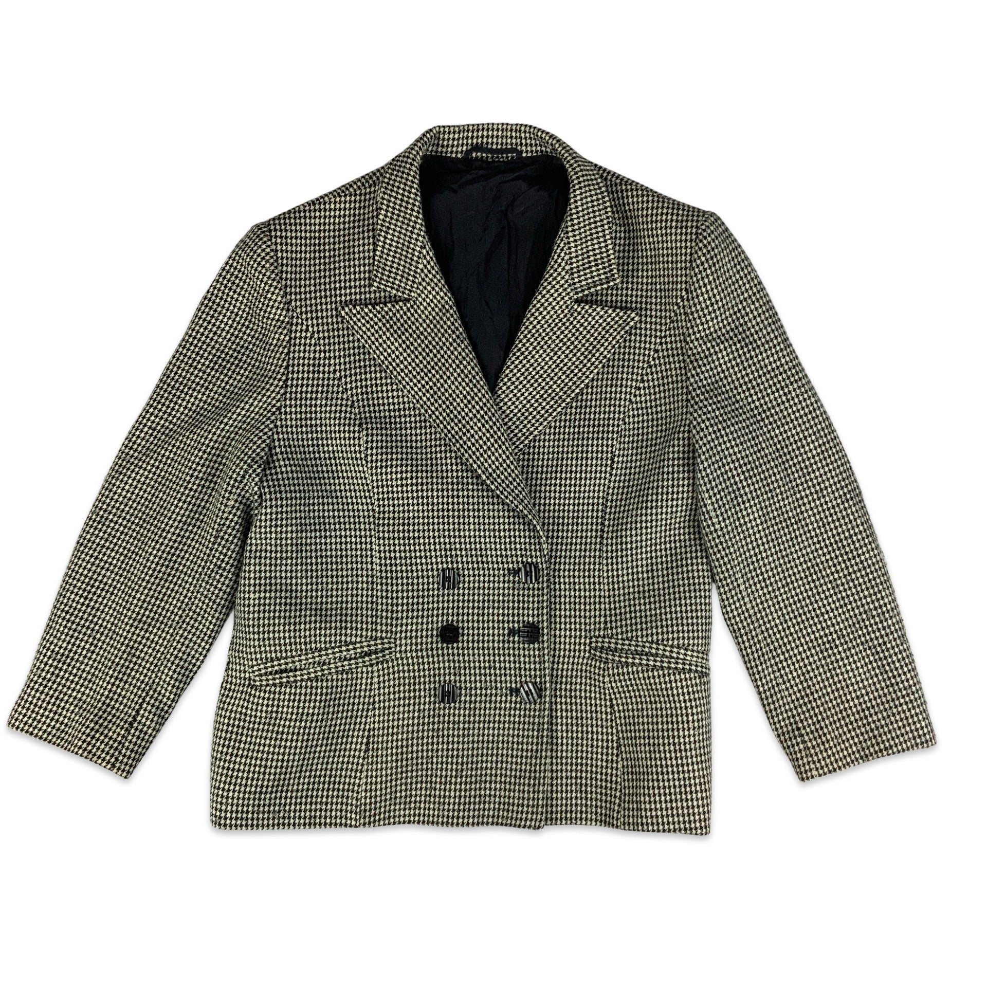 Vintage 90s double breasted wool blazer with all-over black and white dogtooth pattern.