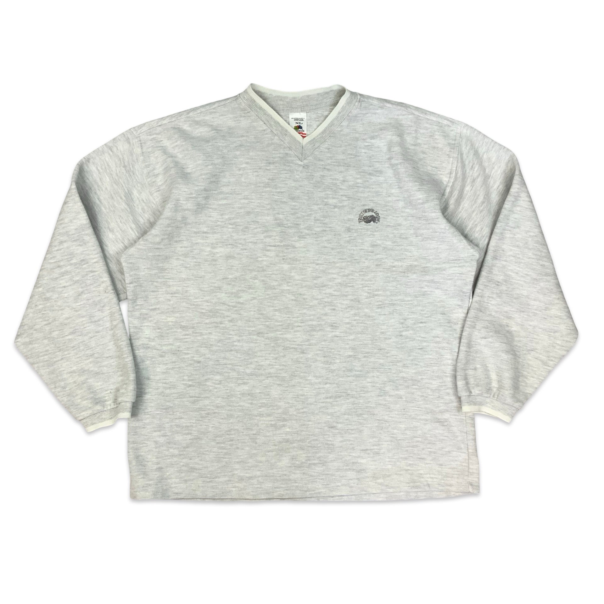 Vintage 90s Fruit of the Loom Grey V-neck Sweatshirt XXL