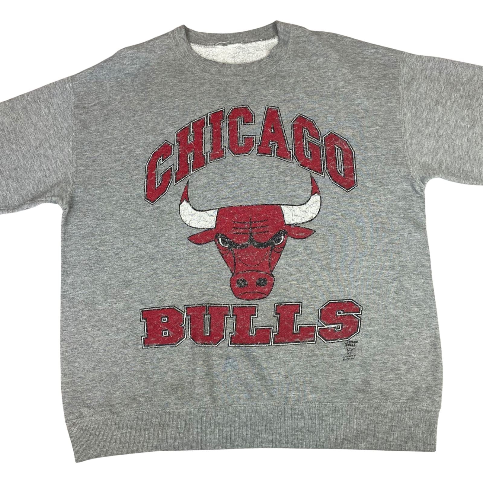 Here we have an amazing vintage 90s Grey Chicago Bulls NBA Nutmeg Crewneck Sweater