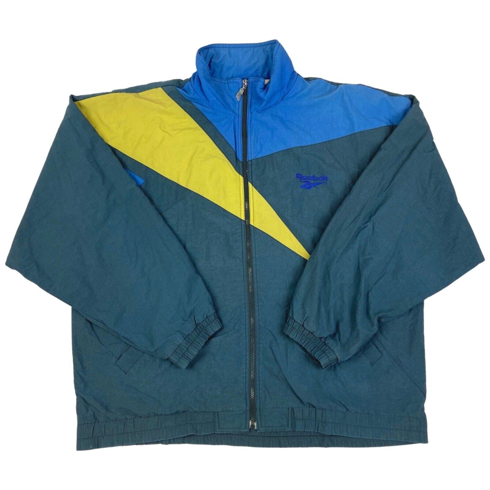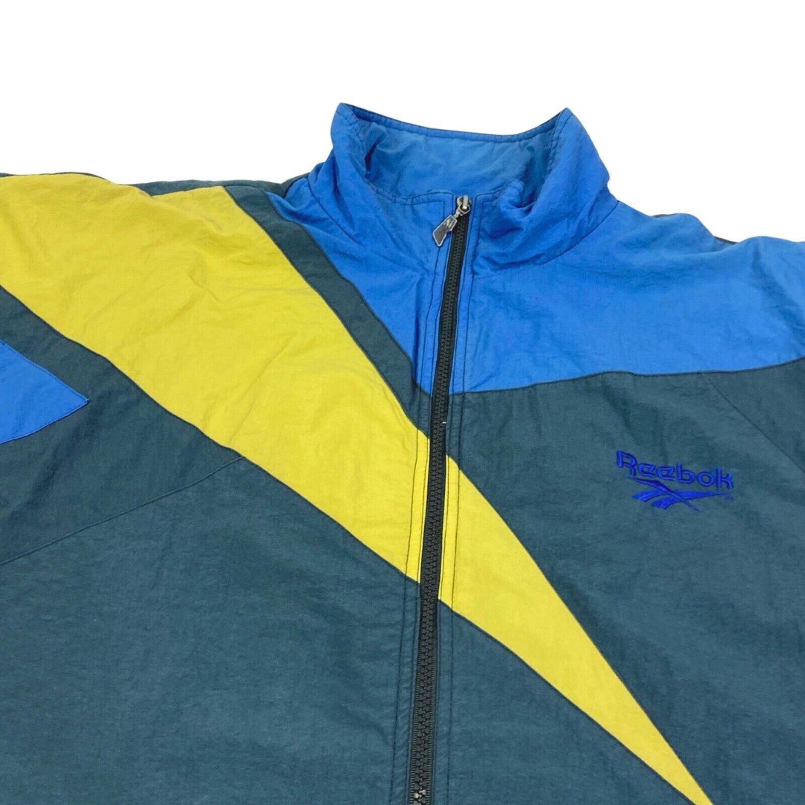Vintage 90s Grey Yellow Blue Embroidered Reebok Windbreaker Jacket Coat XXL