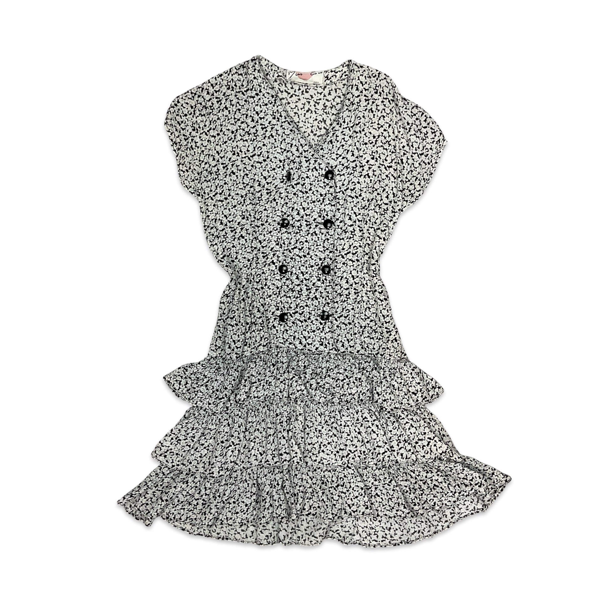 Vintage 90s Grunge Black & White Floral Ruffle Drop Waist Mini Dress