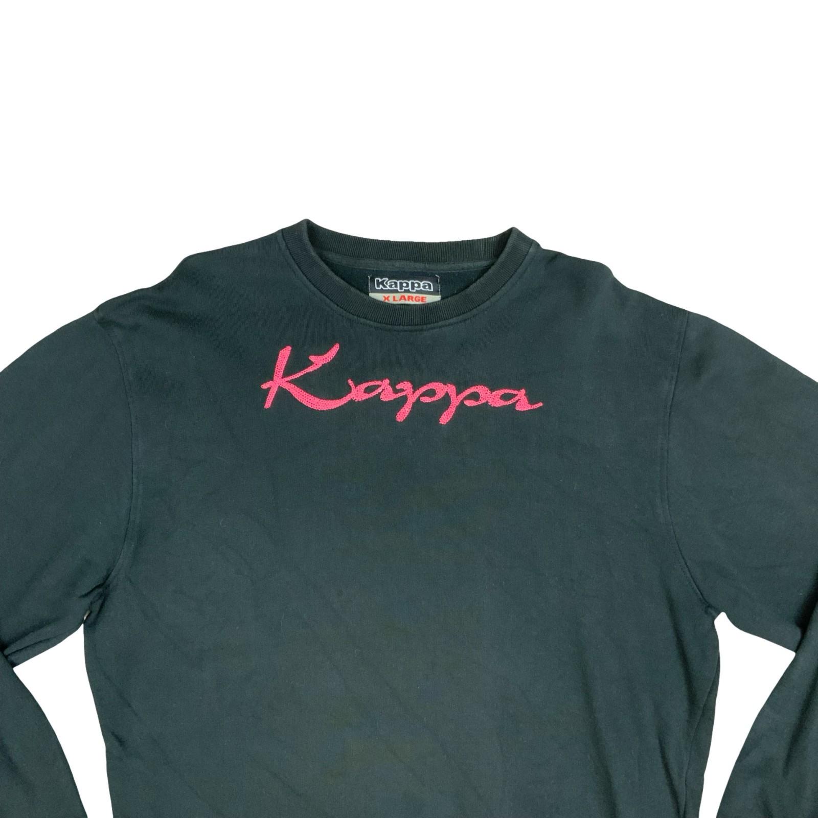 Vintage 90s Kappa Black Embroidered Spell-Out Logo Sweater Crewneck Jumper XL