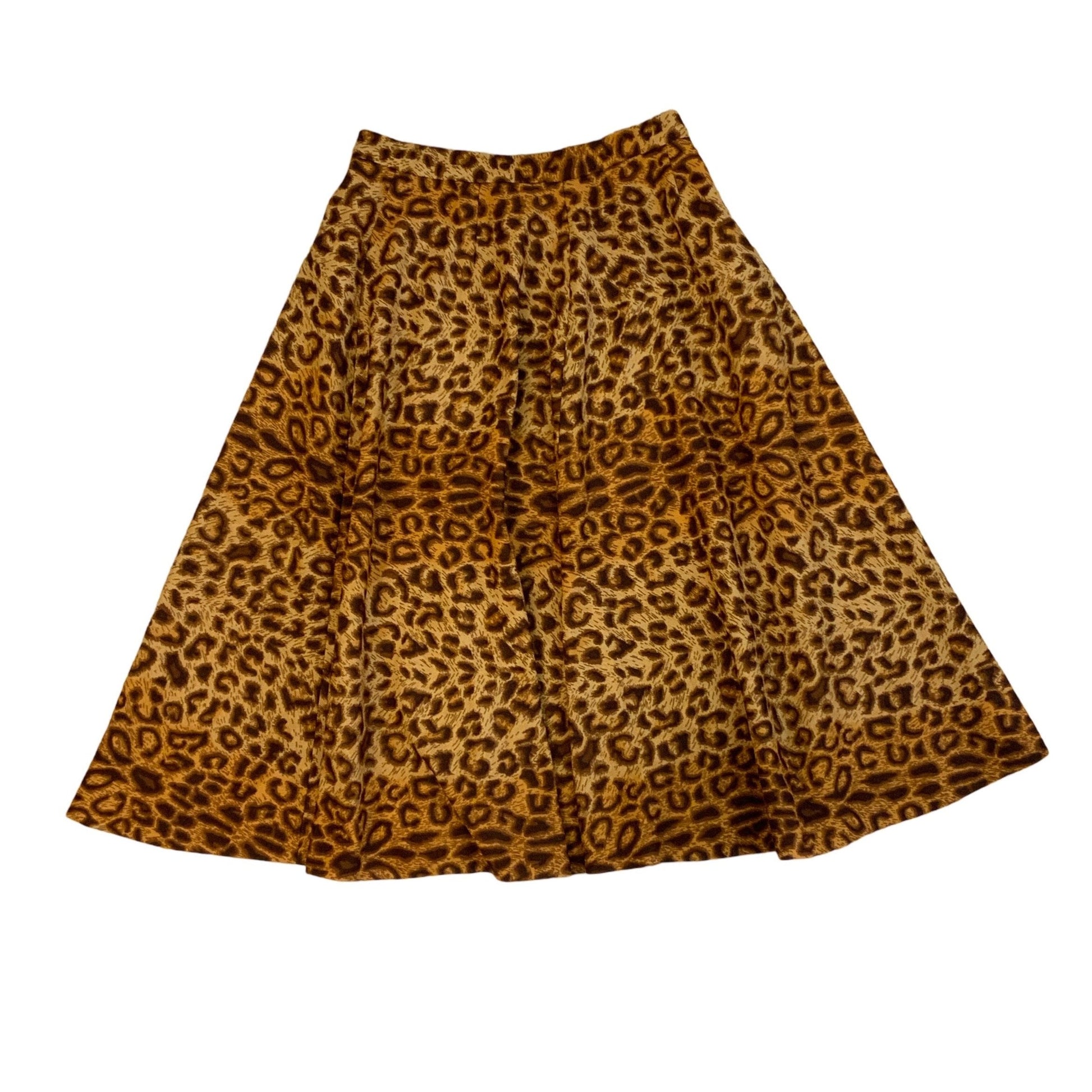 Vintage 90s Leopard Print Round Swing Midi Skirt XS 8