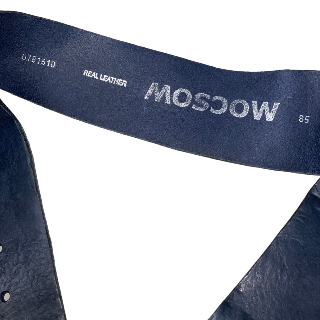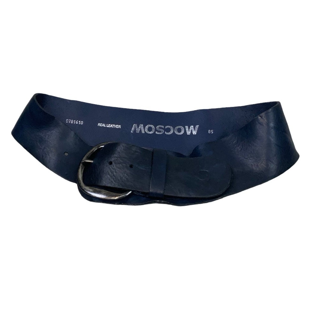 Vintage 90s ‘Moscow’ Blue Suede Leather Silver Circular Slide Buckle Low Waist Belt