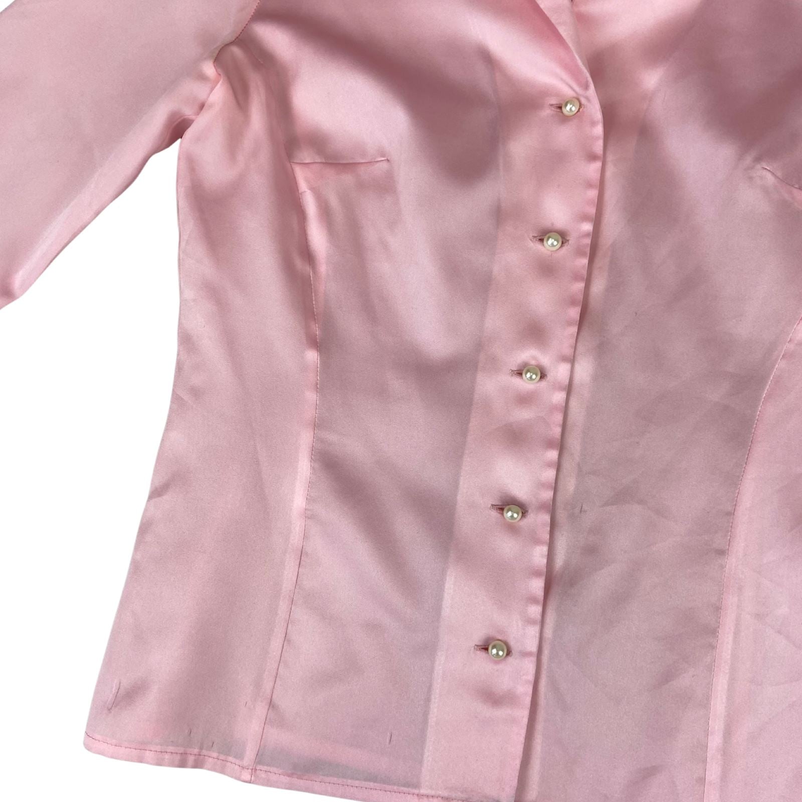 Vintage 90s Pink Silk/Satin Feel Cotton Button Up Blouse Shirt Top M 12 14