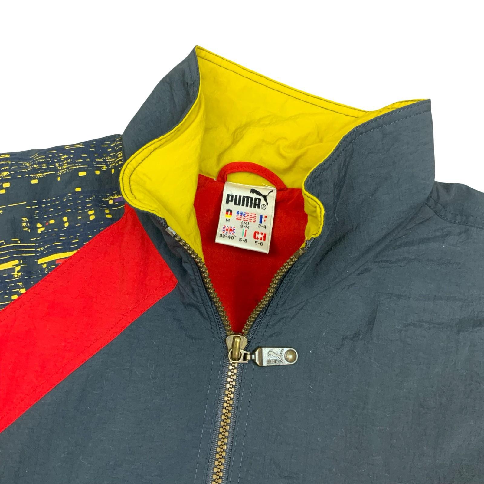 Vintage 90s Puma Grey Yellow Red Track Shell Zip-Up Jacket 2XL