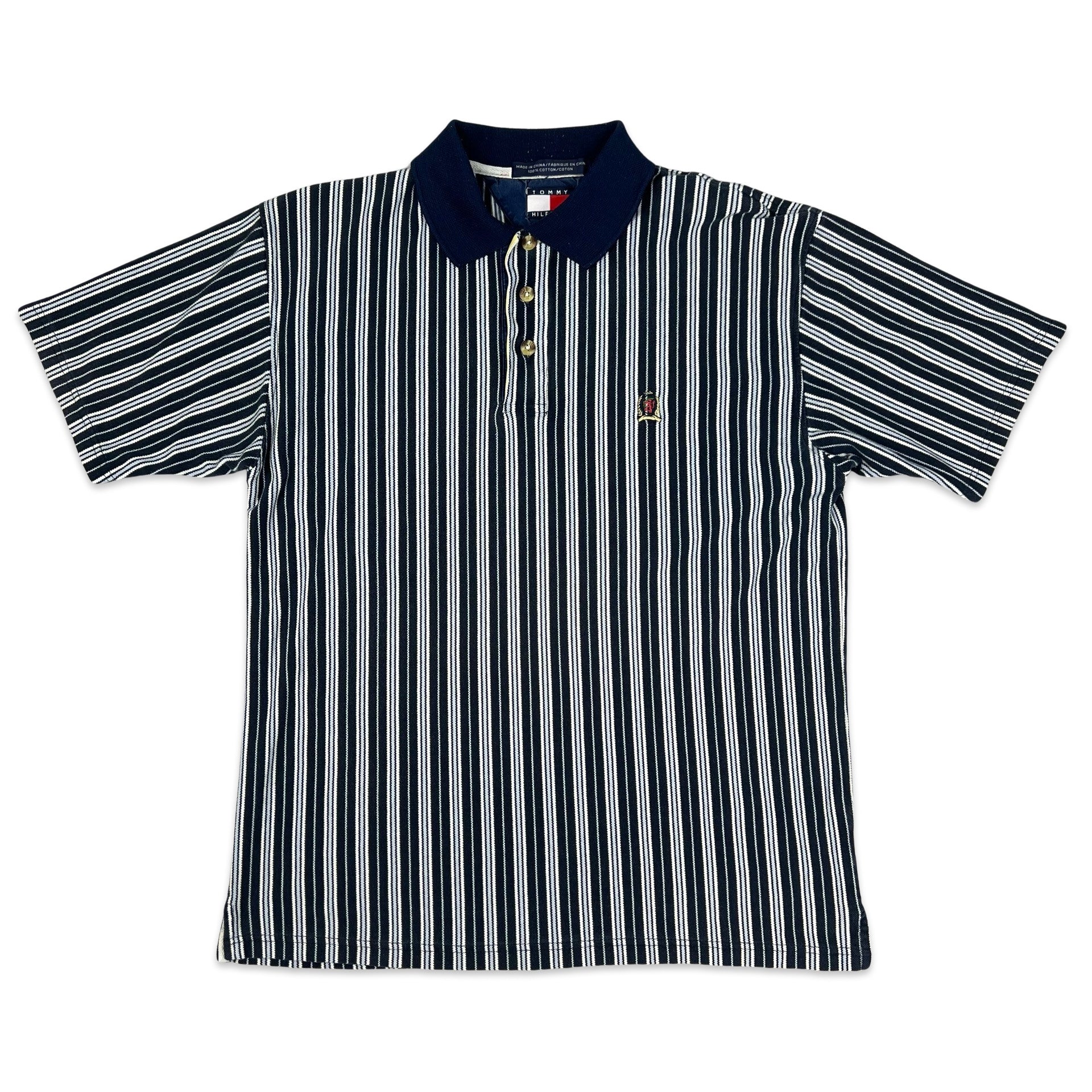 Vintage 90s Tommy Hilfiger Blue & Navy Striped Polo Shirt S M