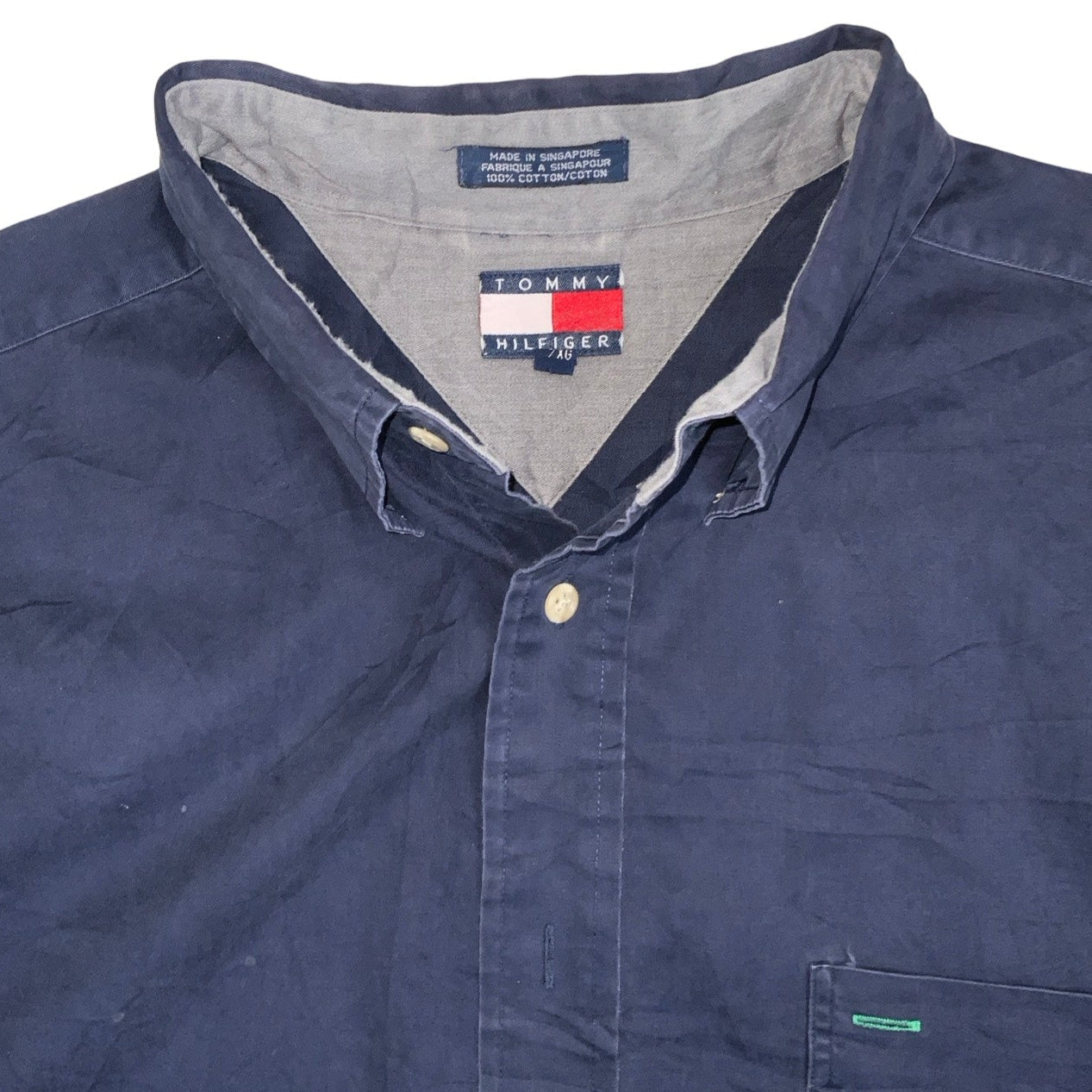 Vintage 90s ‘Tommy Hilfiger’ Blue Single Pocket Button Down Long Sleeve Shirt XL 2XL