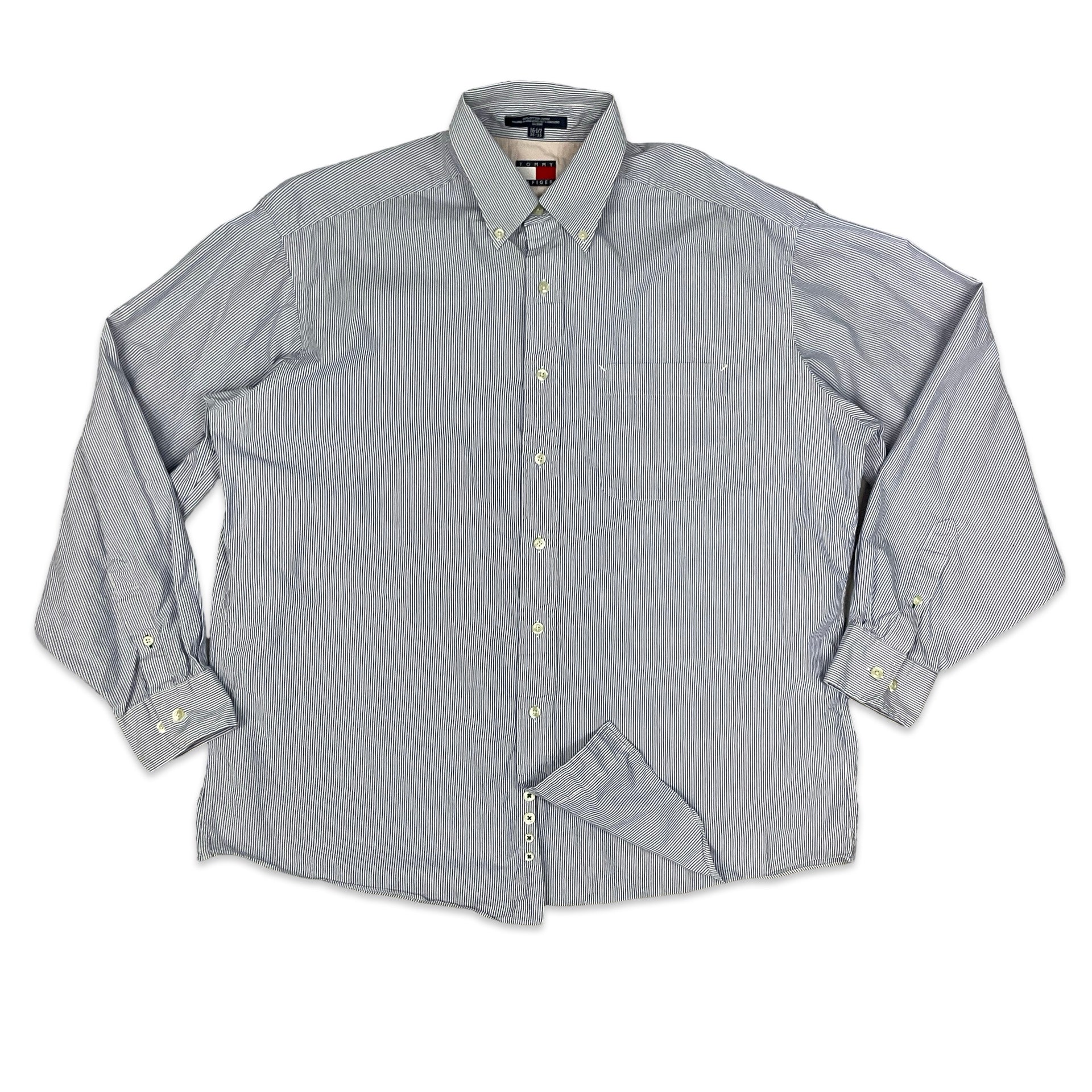 Vintage 90s Tommy Hilfiger Blue & White Striped Shirt XXL 3XL