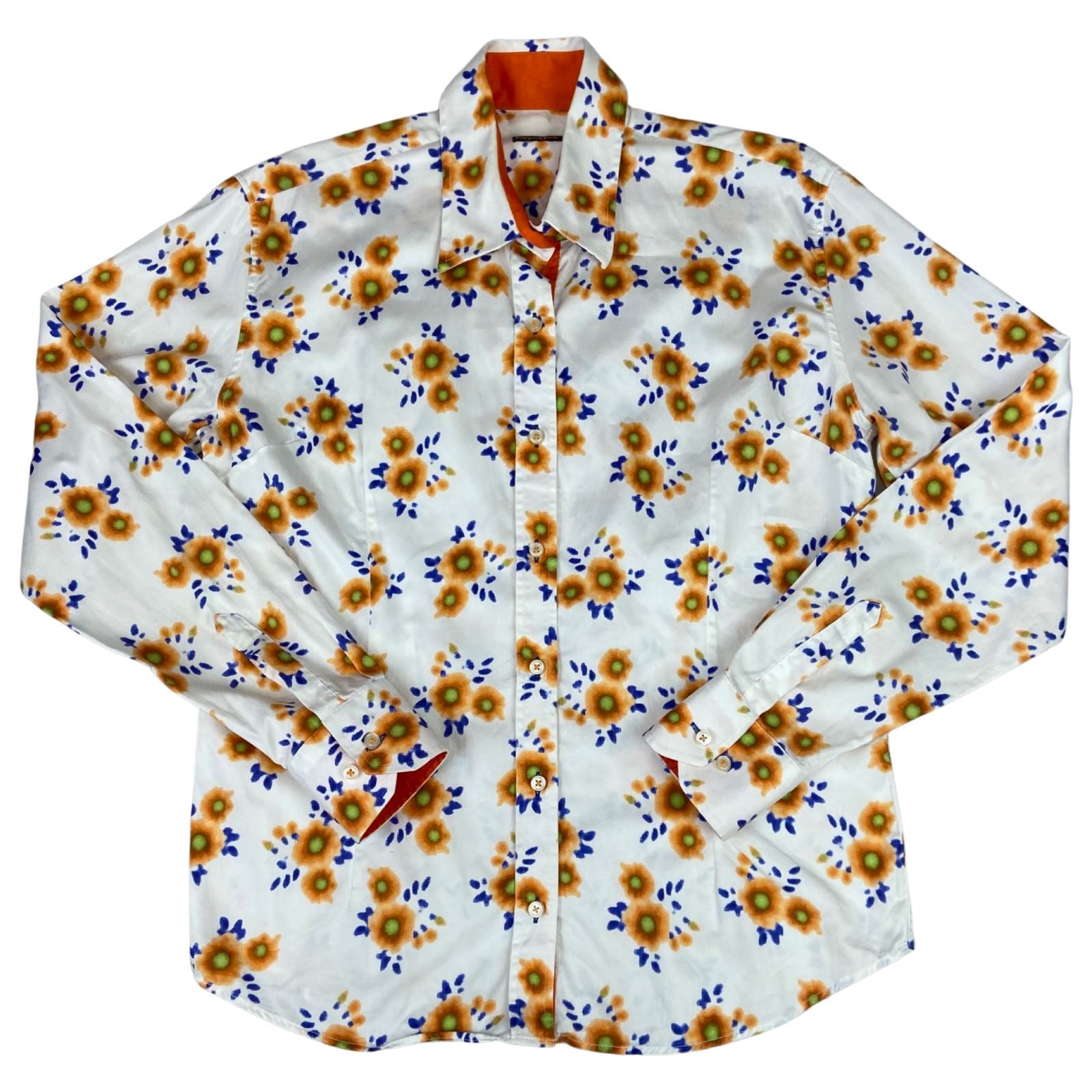 Vintage 90s White Orange Blue Escada Floral Patterned Button Up Blouse Shirt L16