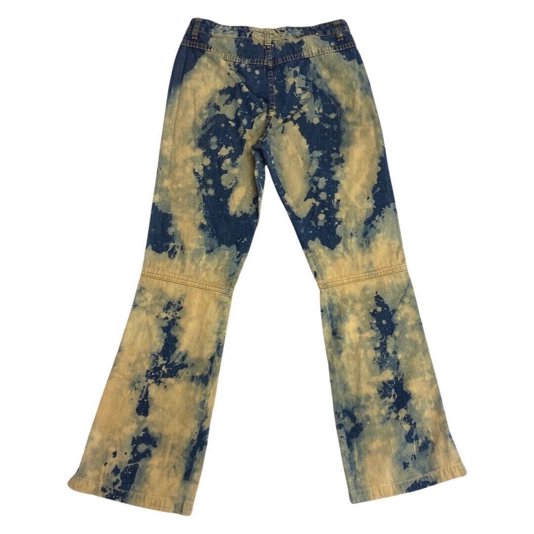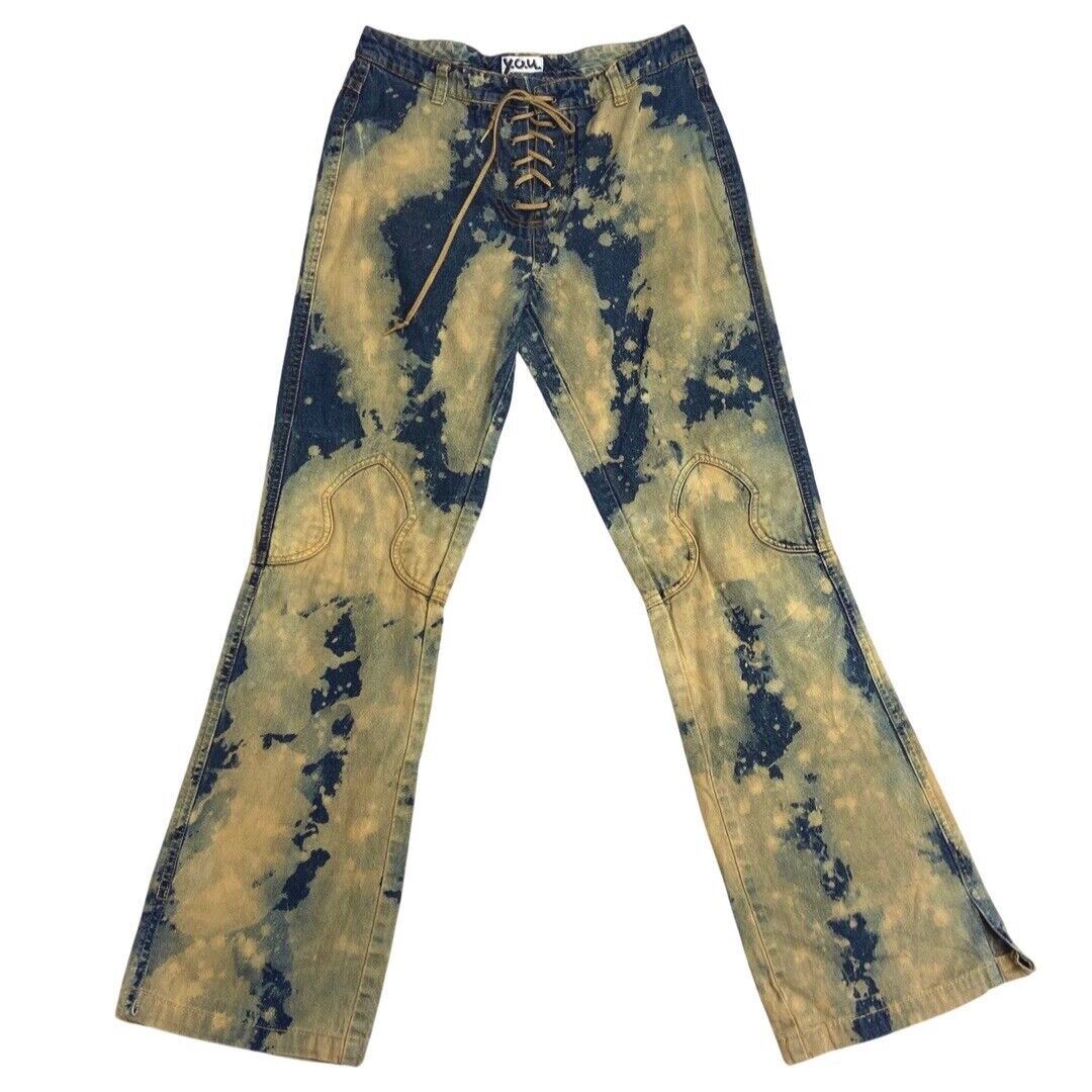Vintage 90s Y2K Blue Bleach Denim Flared Lace Up Detail Mid Rise Jeans 8 10 S