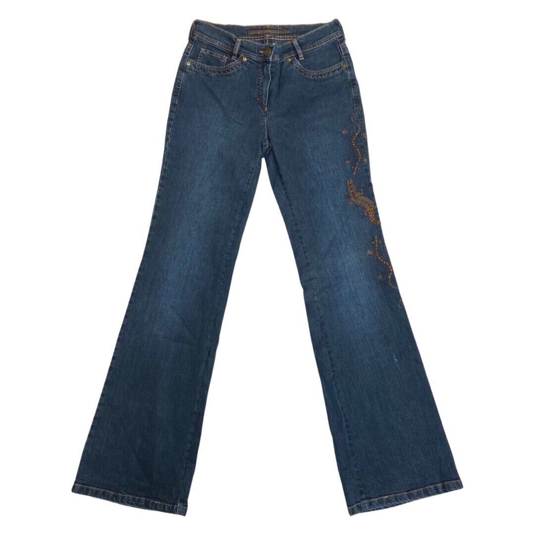 Vintage 90s Y2K Blue Flared Mid Rise Embroidered Embellished Jeans 10 S