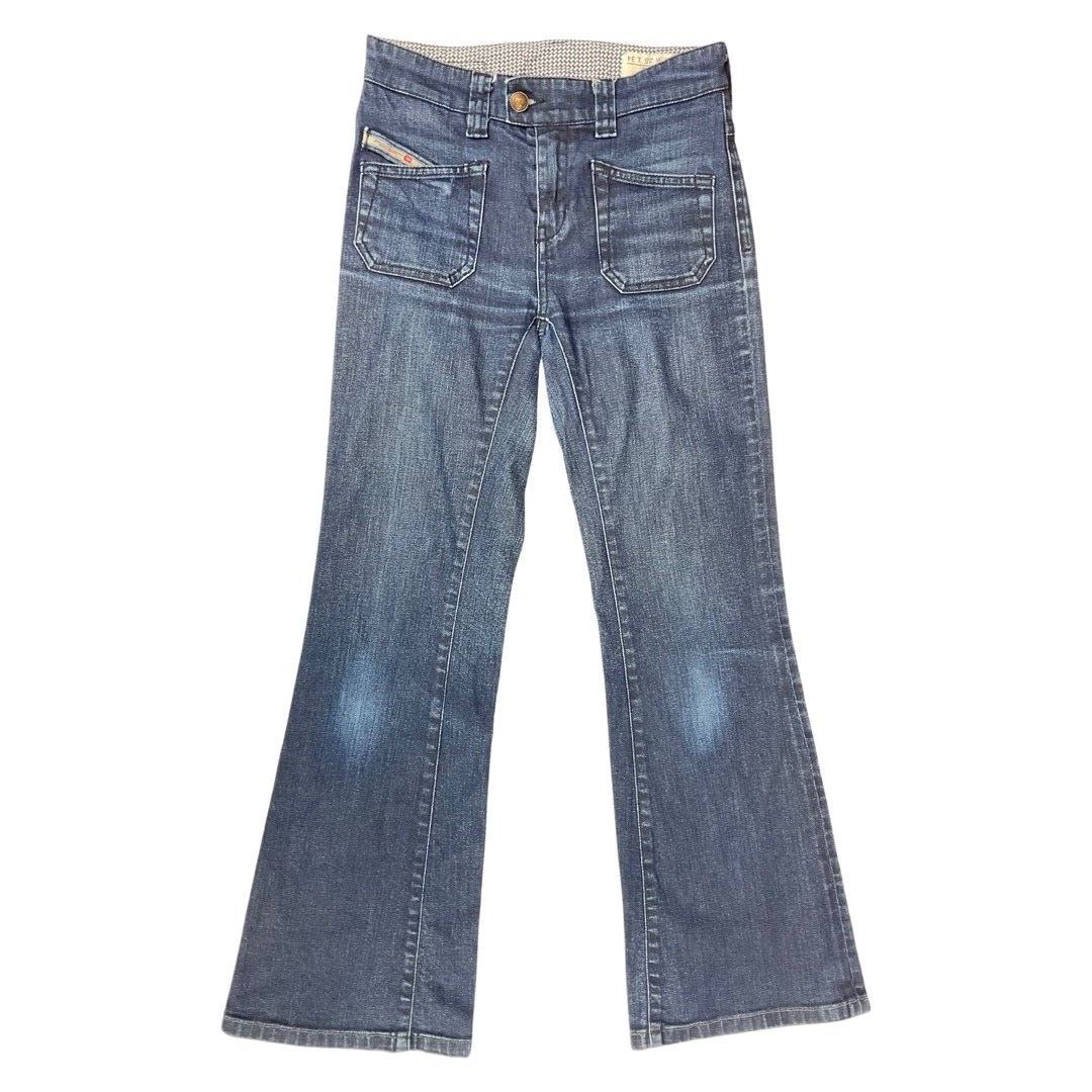 Vintage 90s Y2K Dark Blue Diesel Metal Distressed Bootcut Denim Jeans S 8 10