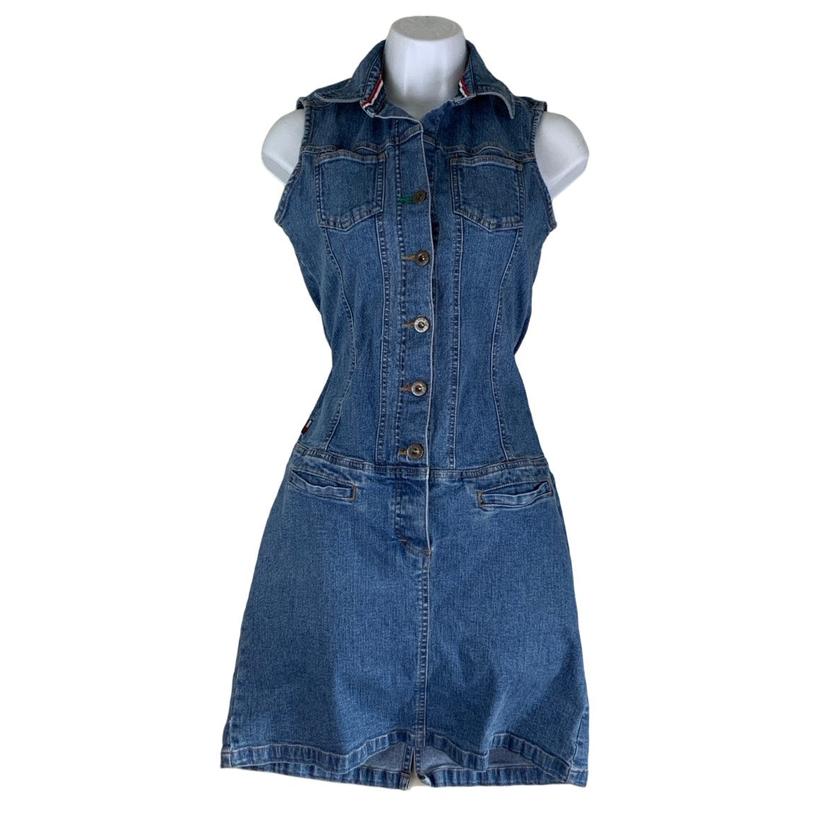 Vintage 90s Y2K Tommy Hilfiger Jeans Denim Mini Summer Dress XS 6