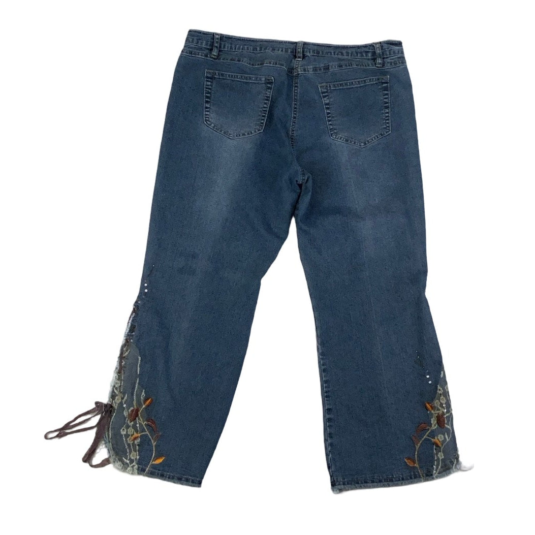 Vintage 90s Zeng Yang Jeans Wear Denim Collection Floral Lace 3/4 Denim Jeans 10 35W 34L