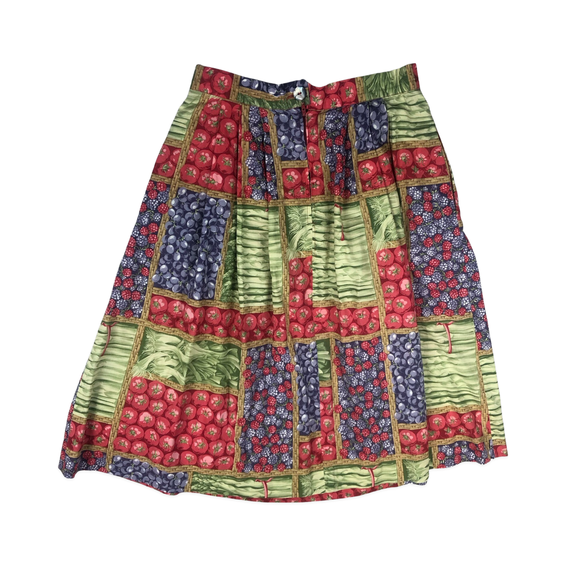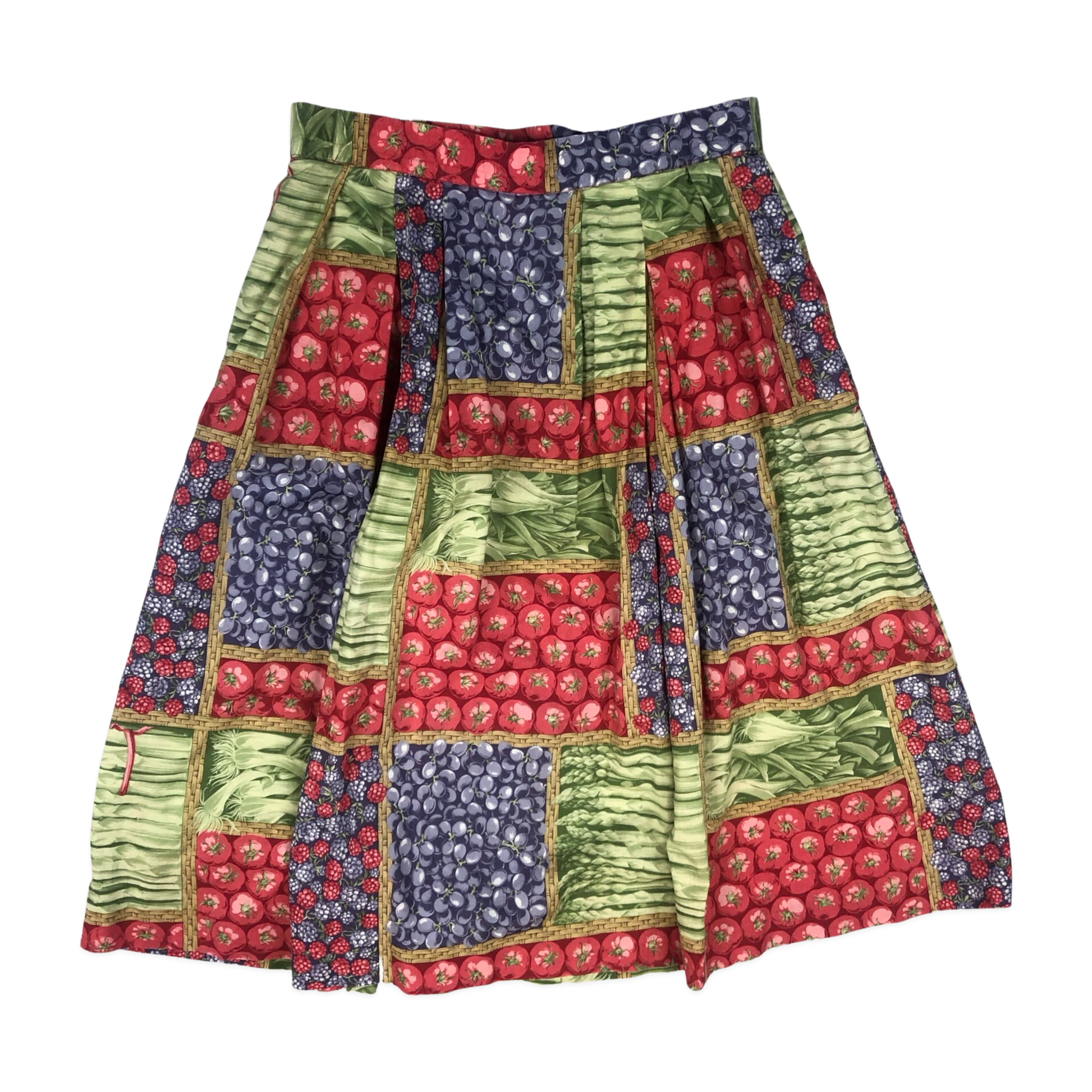 Vintage Agricultural Theme Fruit and Veg Print Pleated Skirt 10