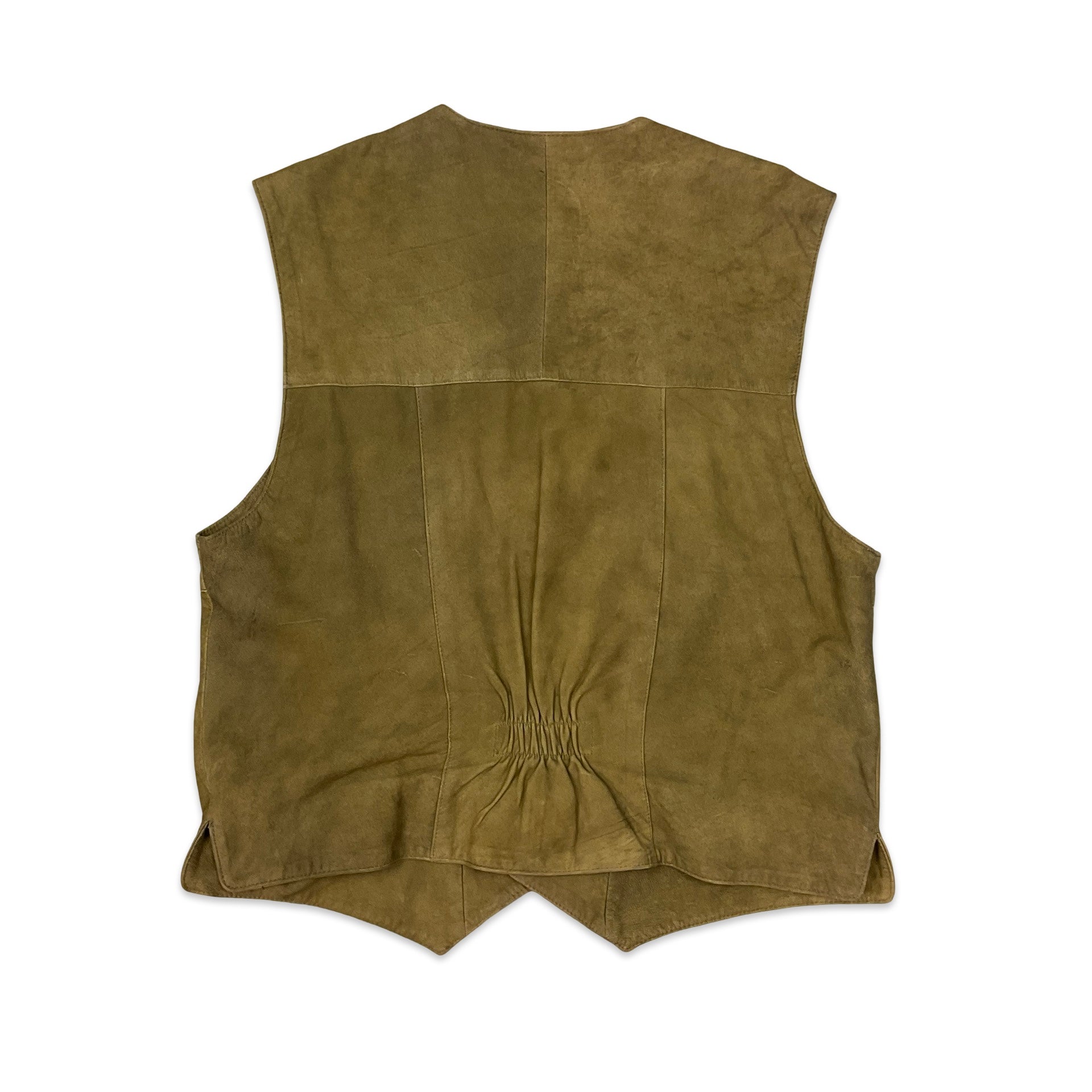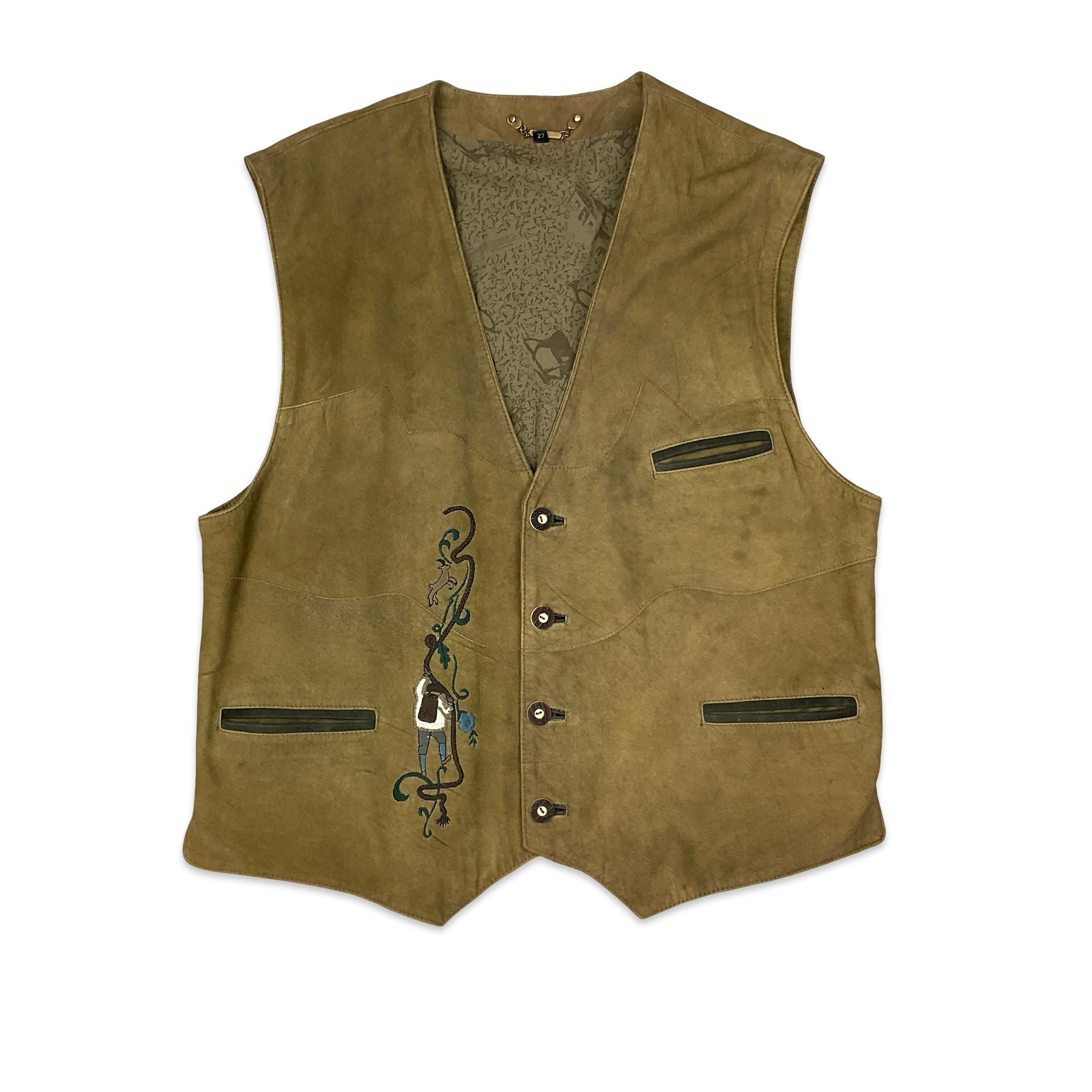 Vintage Alpine brown suede embroidered waistcoat with pockets.