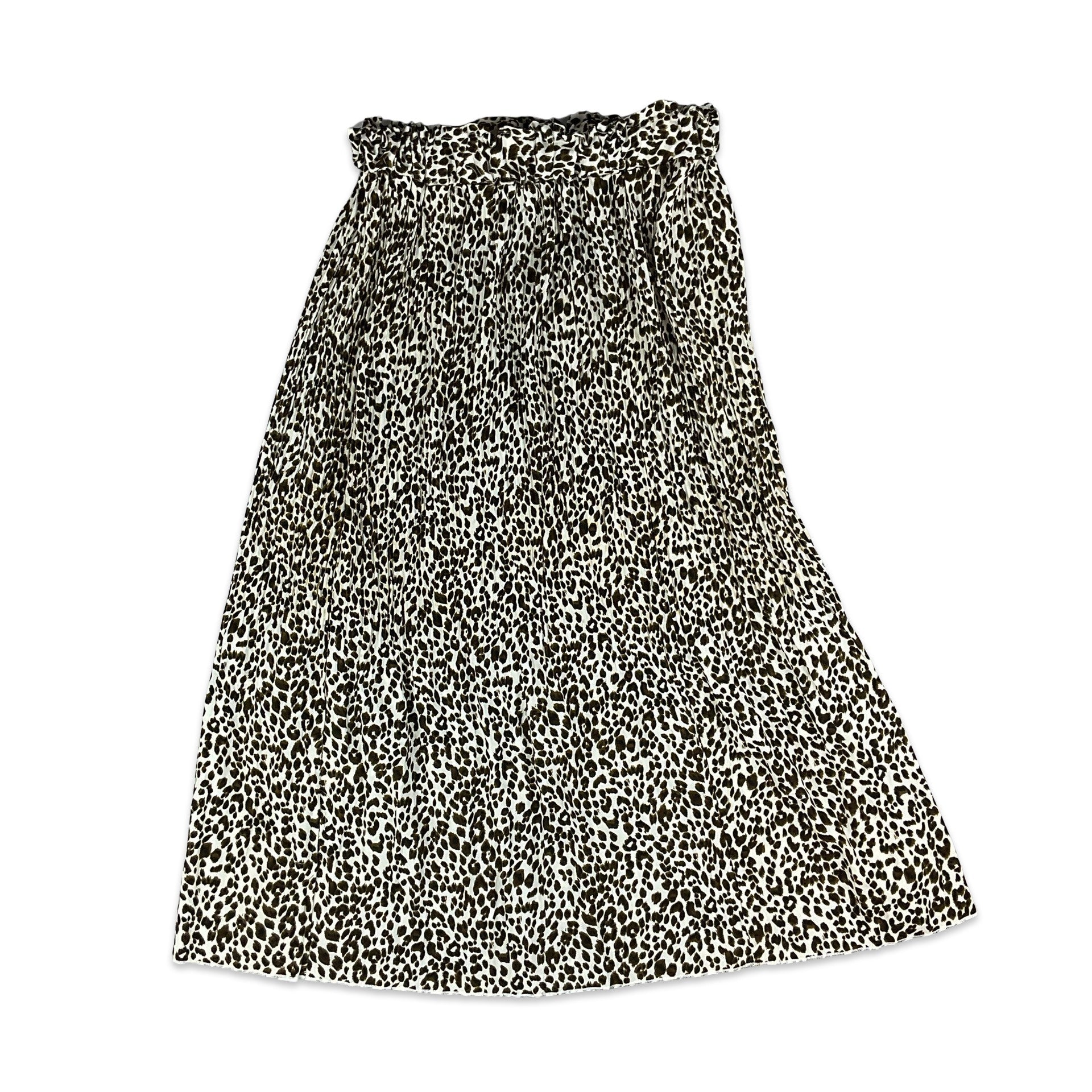 Women’s vintage pleated skirt. Elasticated waist. White & brown animal print.