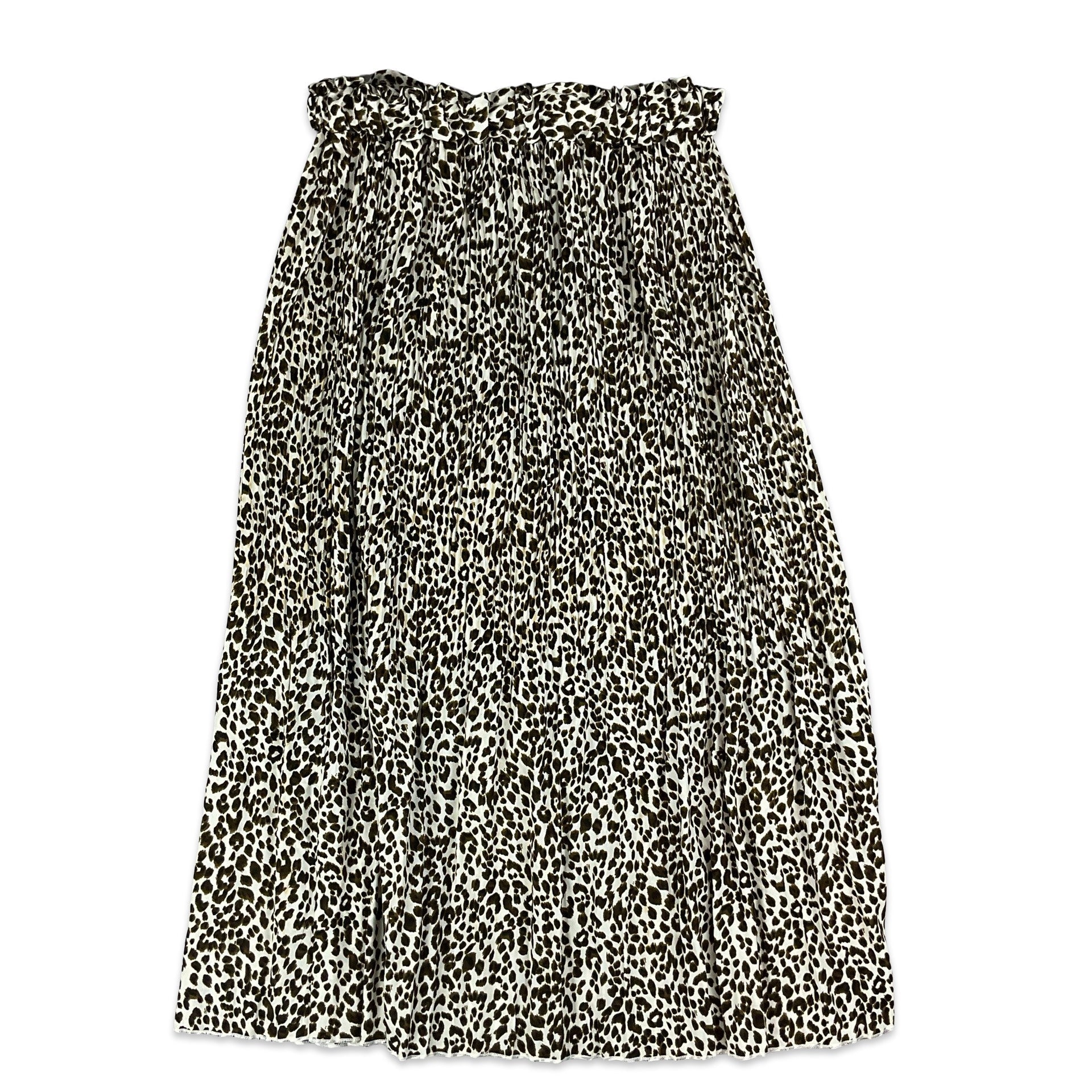 Vintage White & Brown Animal Print Pleated Midi Skirt