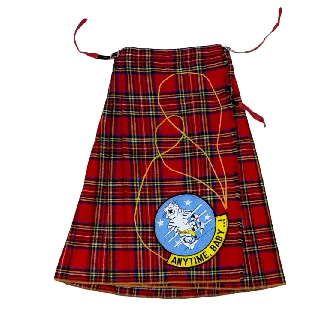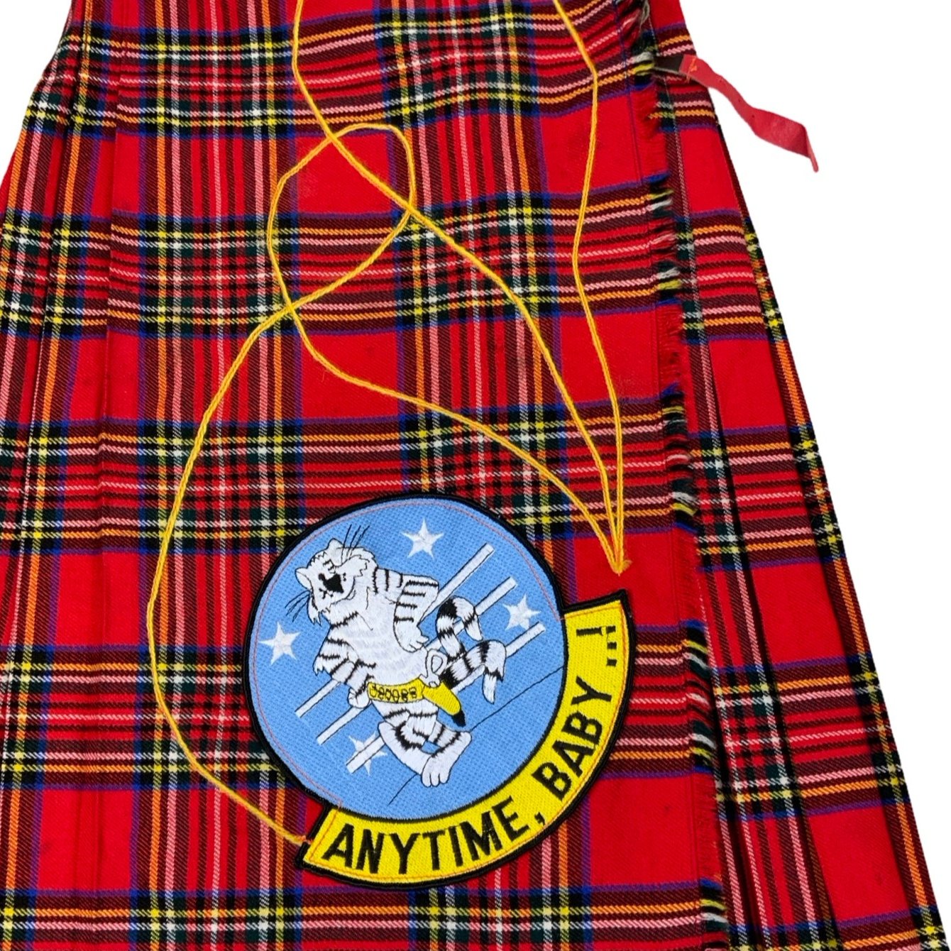 Vintage 'Anytime, Baby..!' Patch Embroidered Scotland Traditional Tartan Kilt XS 4 6 8 10 12