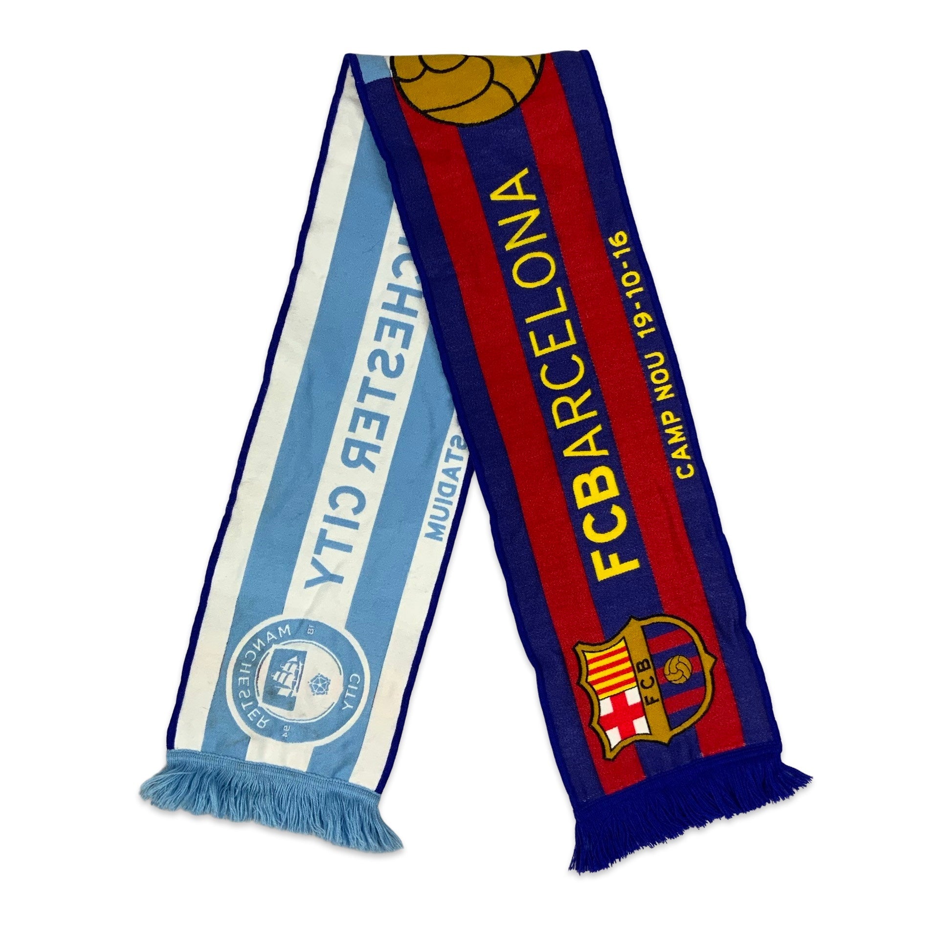 Preloved 2016 Barcelona vs Manchester City FC scarf.
